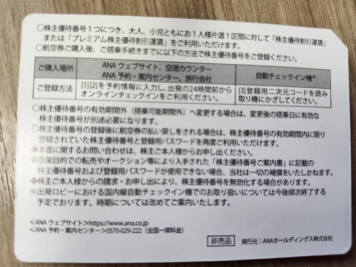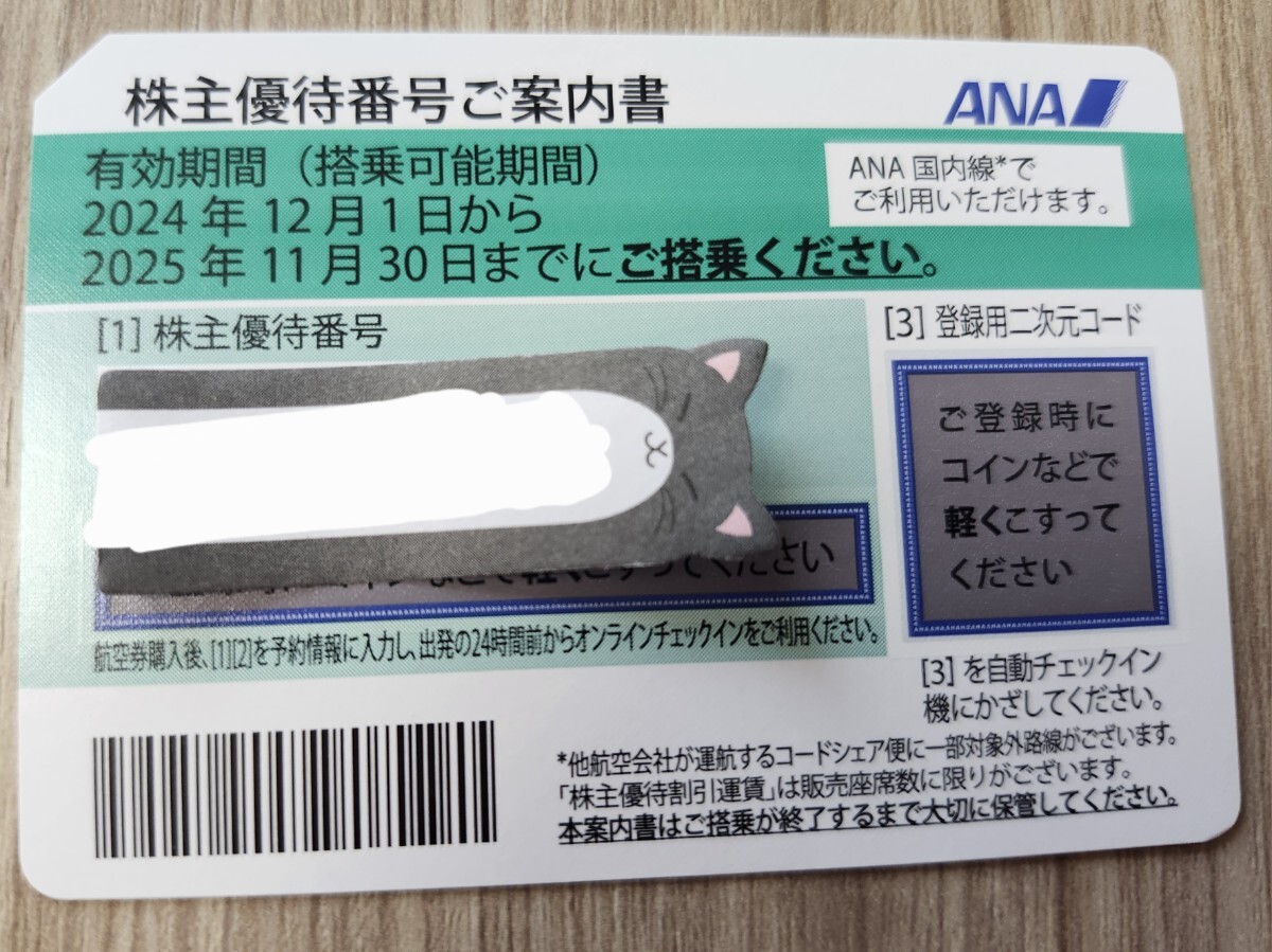☆ANA 株主優待番号:2025年11月30日:1枚☆