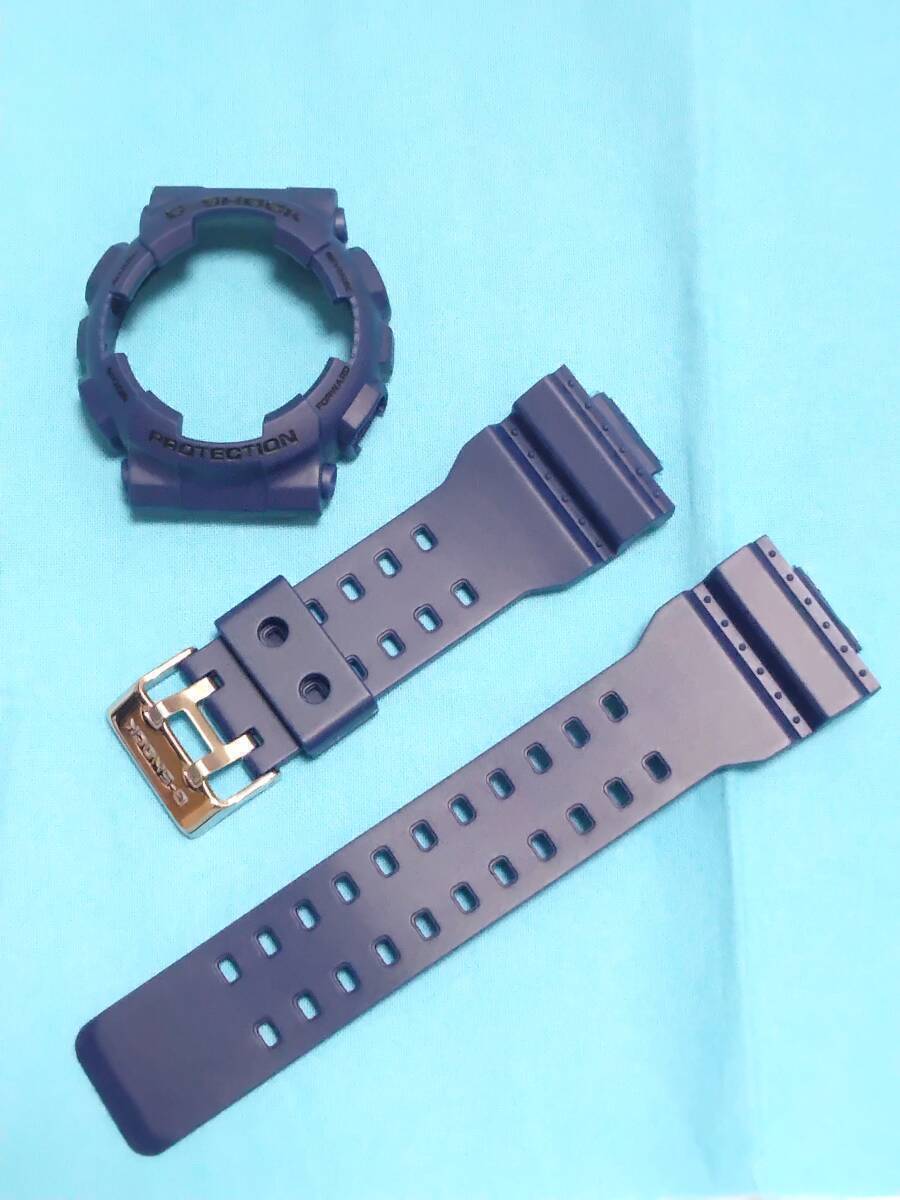 【未使用】 G-SHOCK GA-100 GA-110 GA-120 GD-100 GD-110 GD-120 ベゼル ベルト セット 紺 ネイビー 黒文字 バンド ジーショック