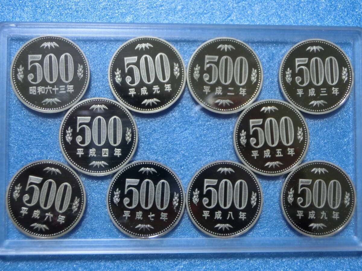 プルーフ 500円硬貨 昭和63年~平成9年 セット出し 新品同様