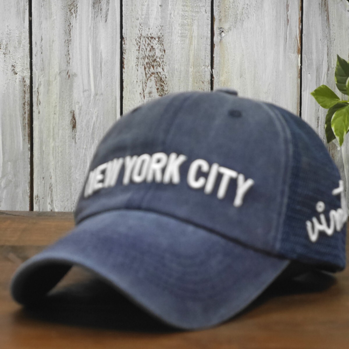 NEW YORK CITY メッシュキャップ ネイビー ロゴ UV対策 サイズ調整可能 送料\450  男女OK メンズ レディース