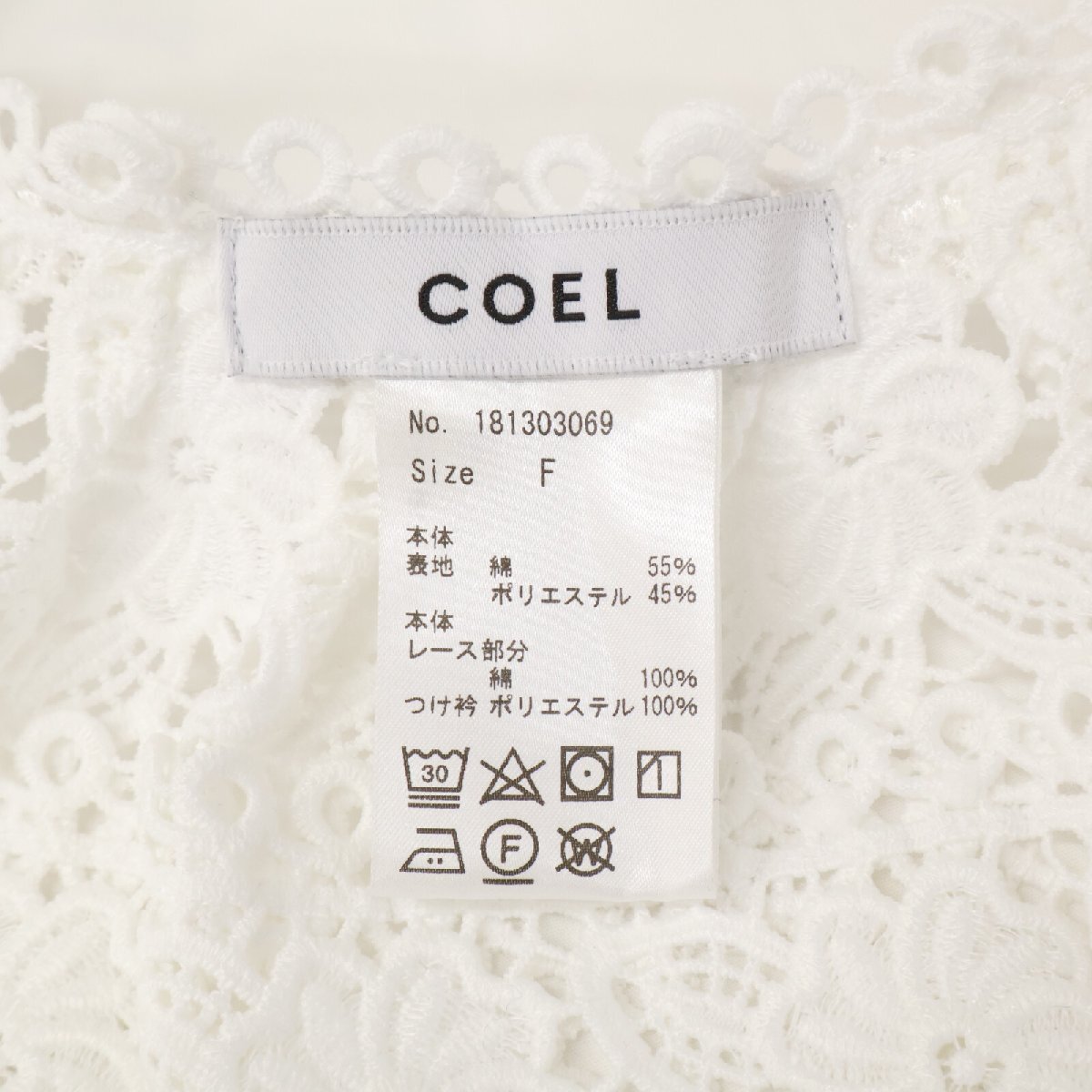 COEL コエル 181303069 ホワイト レース刺繍 襟切り替えシャツ ホワイト F トップス コットン レディース 中古