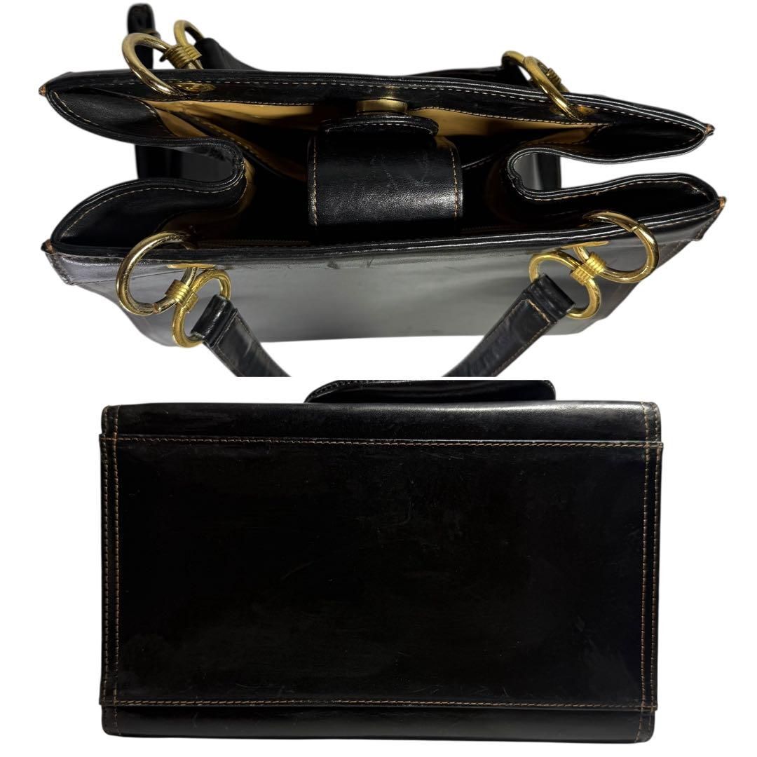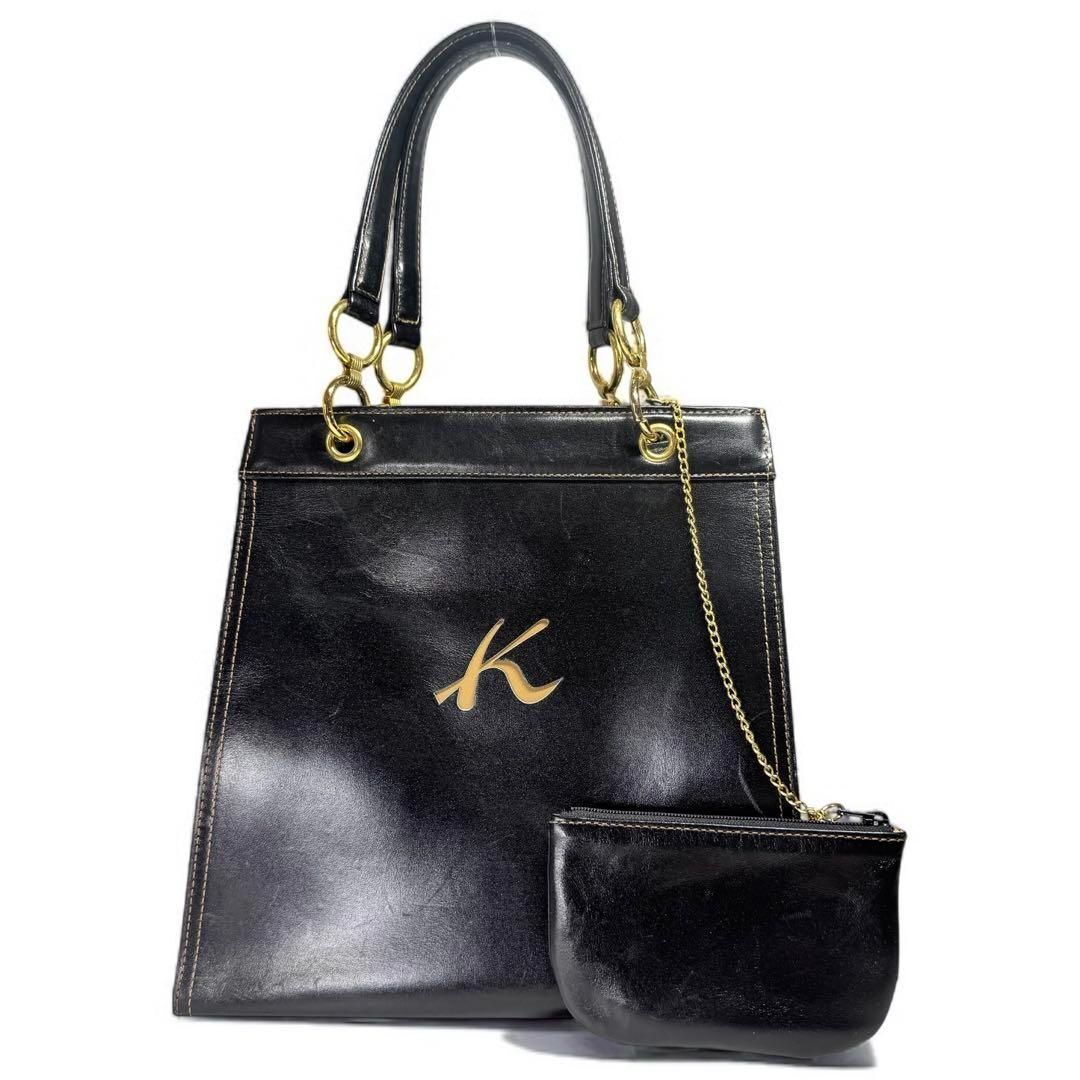 【鑑定済】kitamura キタムラ レザー 本革 ハンドバッグ フォーマルバッグ 手提げ かばん 鞄 自立 式典 高品質 ゴールド金具 多様 黒 S2922