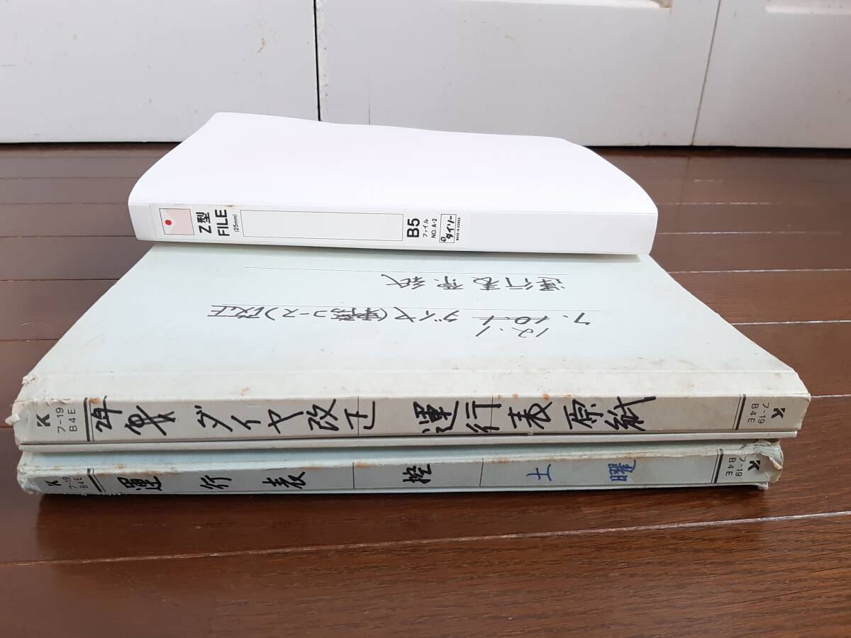 こちらは、遠州鉄道の営業所で実際に使用されていた「路線バス運行表の原紙」3冊セットです。