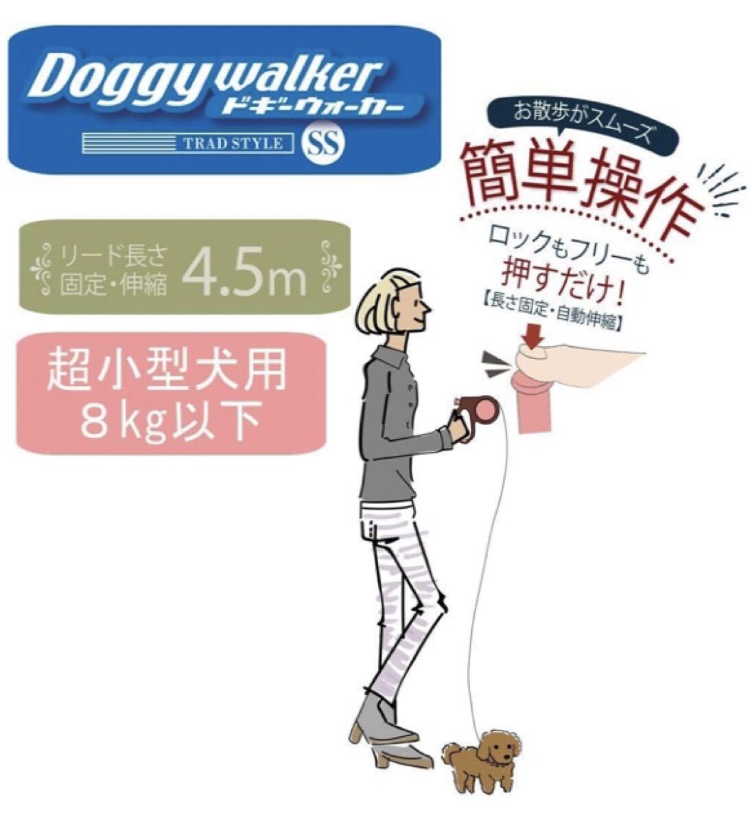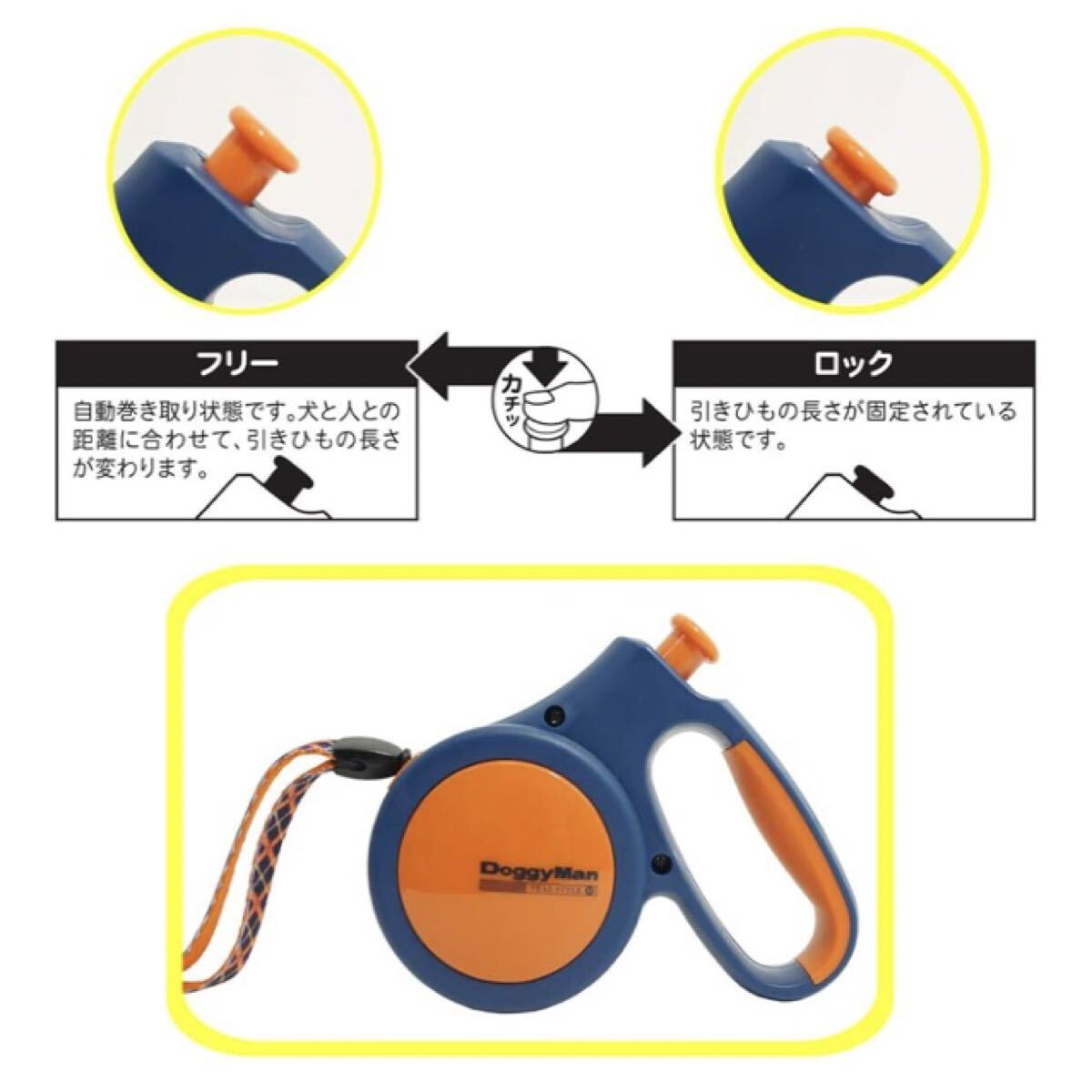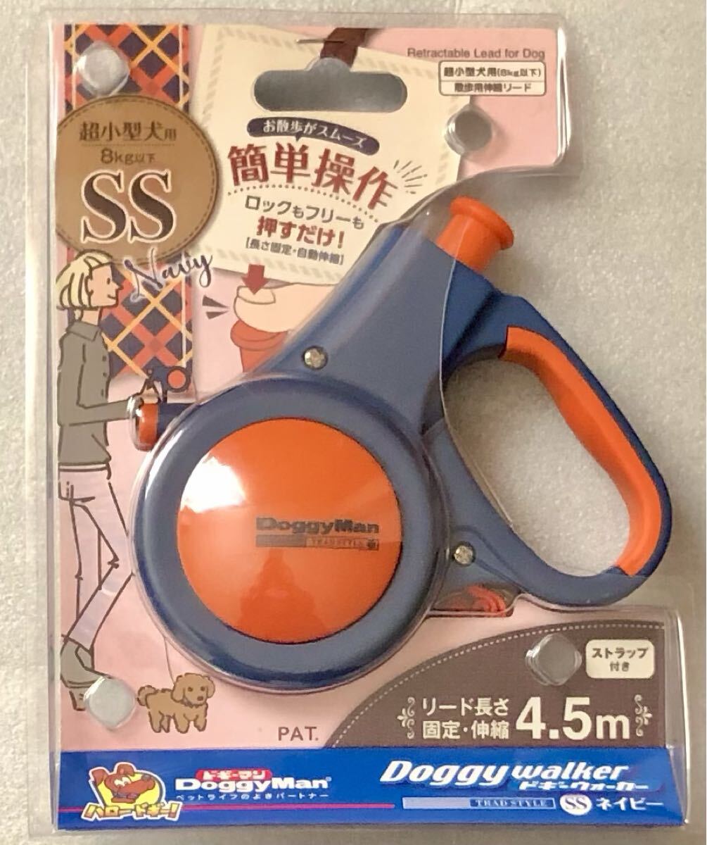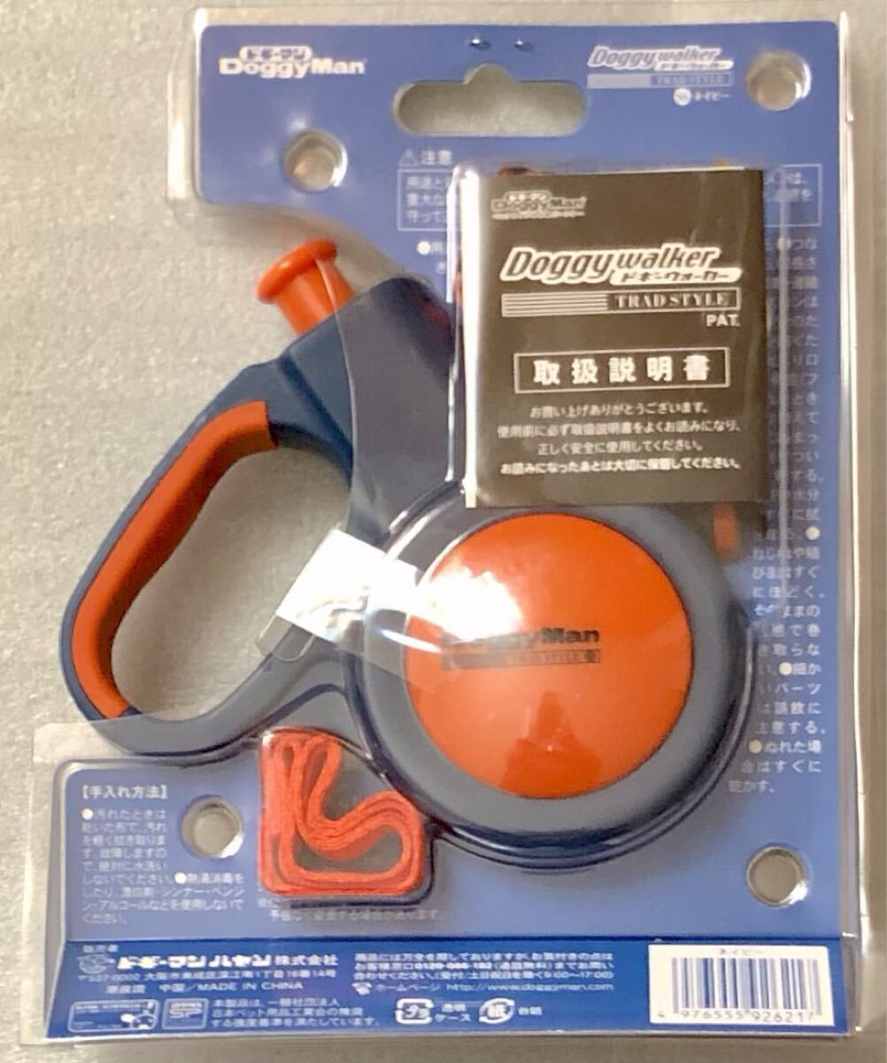 ●DoggyMan ドギーマンハヤシ株式会社の『ドギーウォーカー トラッドスタイル』の散歩用伸縮リードです。ストラップと取扱説明書付き。