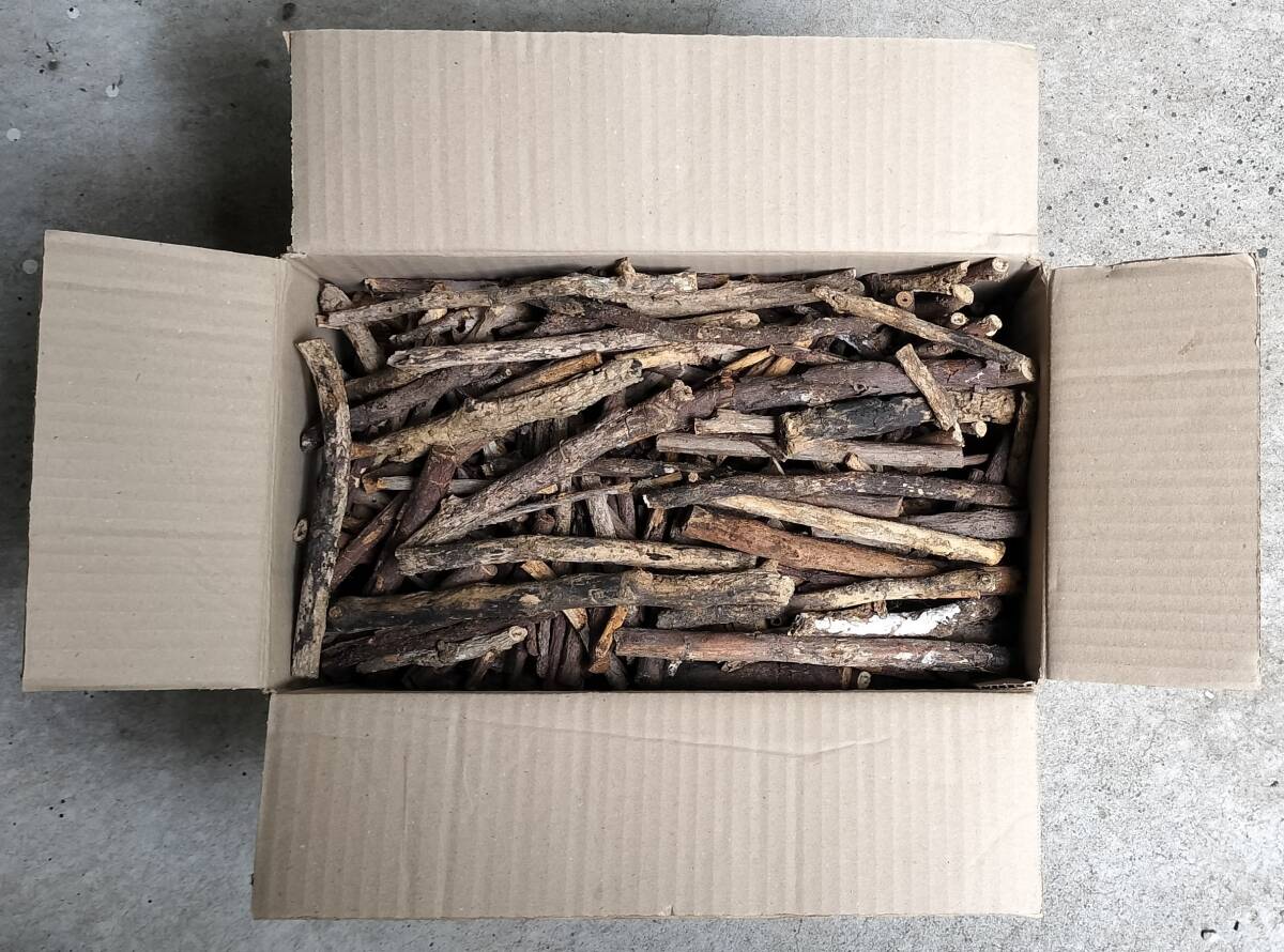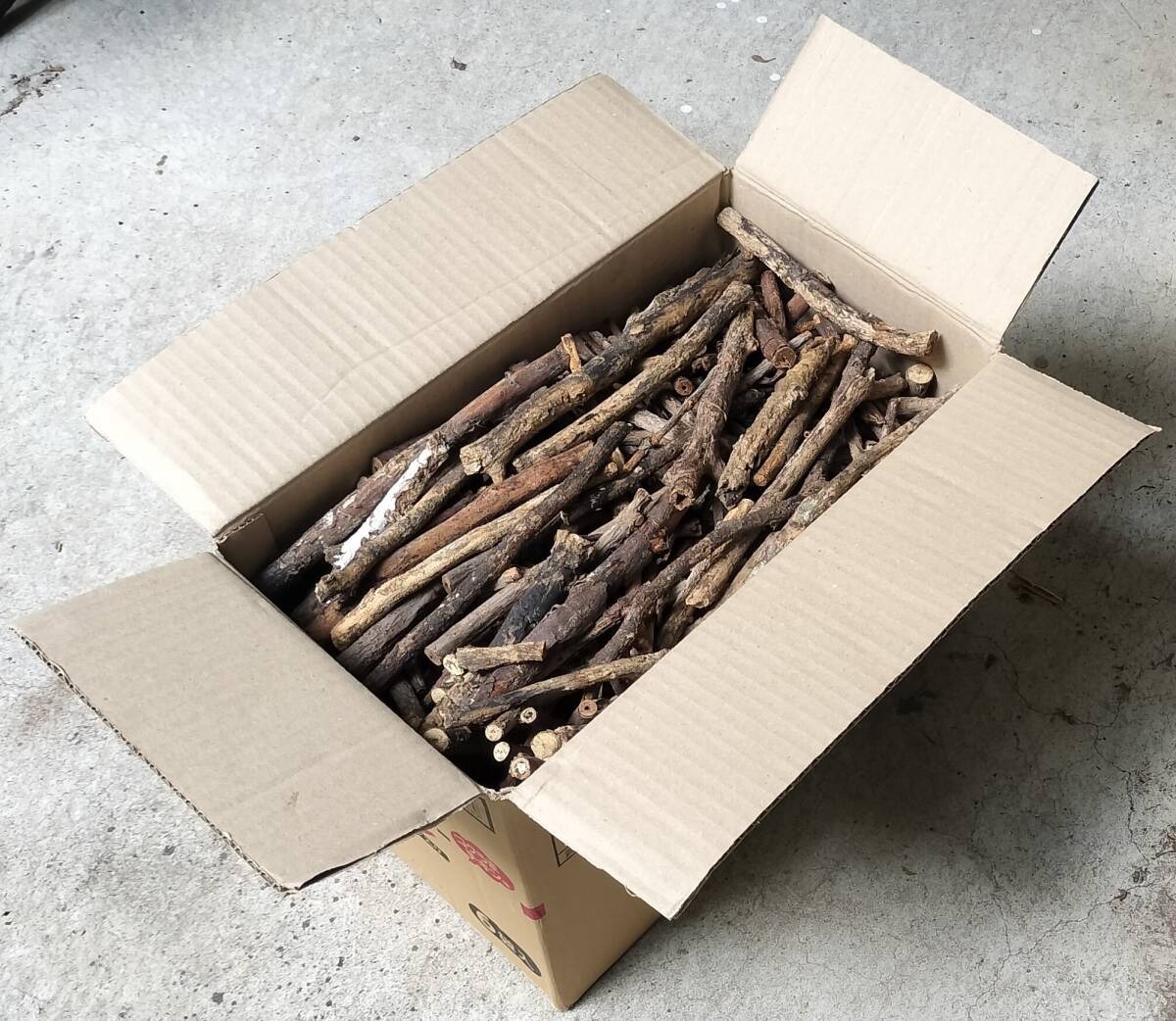 写真の通り、カラッカラッに乾燥した木の小枝を段ボール一杯に詰め込んで御届けします。