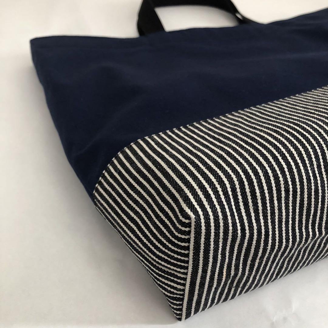 45×35 大きめ レッスンバッグ シンプル 紺×ヒッコリー シンプル 男の子