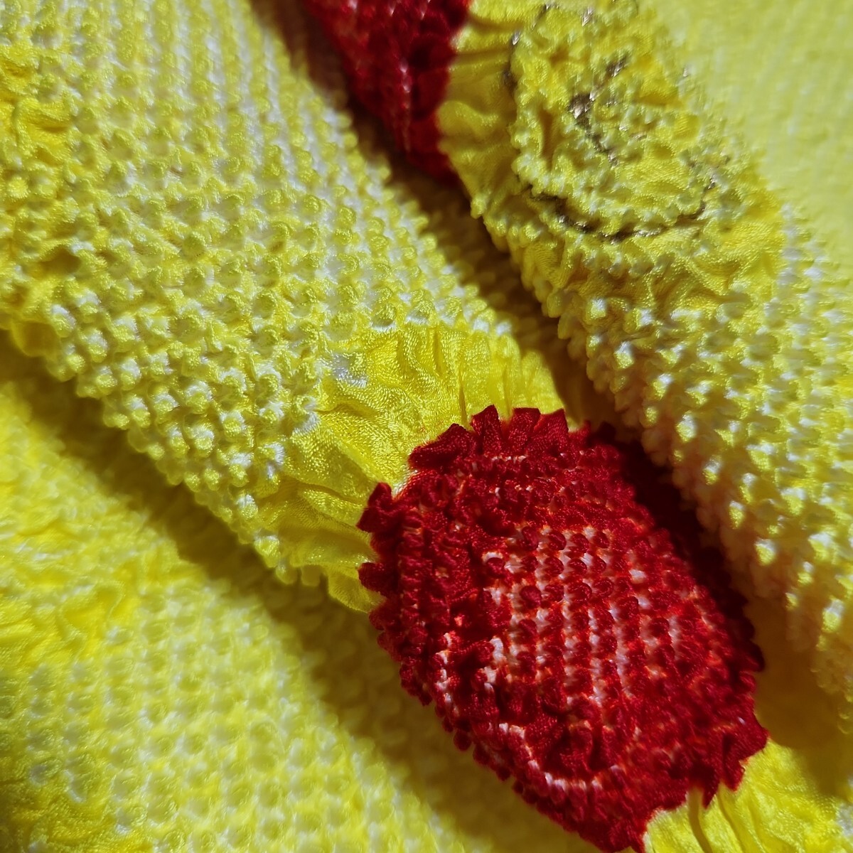 正絹素材に絞り染めを施した、絹100%の贅沢な子ども用の帯揚げです。七五三、雛祭りなどのお着物に合わせていただけます。
