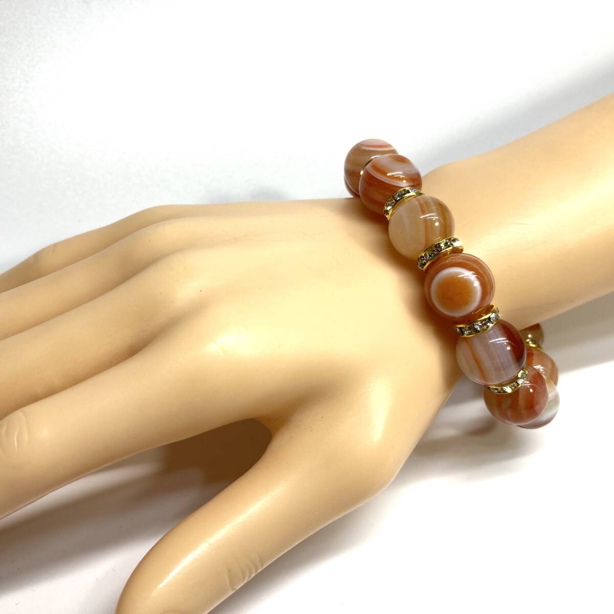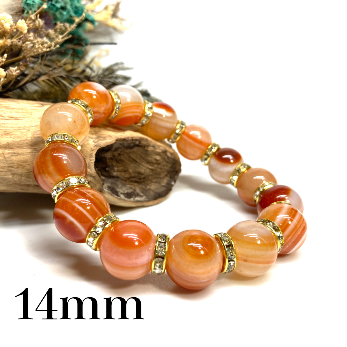 こちらは、14mm玉のカーネリアン・サードニクス(レッド天眼石)を使用した天然石ブレスレットです。石との間にはロンデルを挟み高級感を演出しています。シンプルなデザインですのでどんなコーディネートとも合わせ易いブレスレットです。石大きさは14mm玉です。内周約17cmです。パワーストーンを付けてる方へのプレゼントにもお勧めです。14mmサイズのリクエストが多々ありましたので少量ですが販売しました。気になる方はお早めにどうぞ。