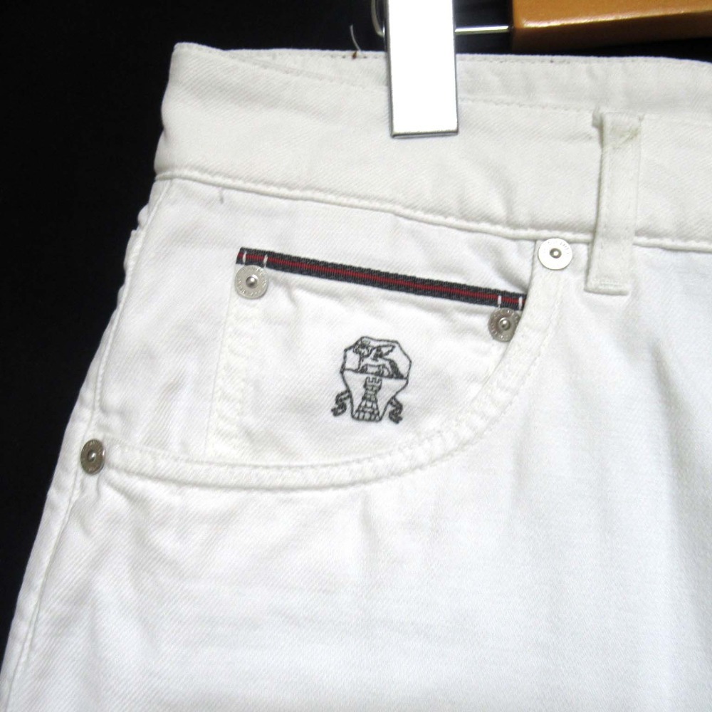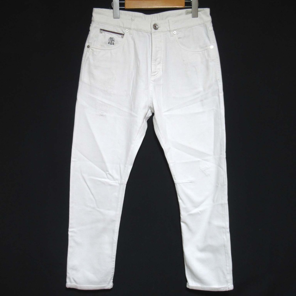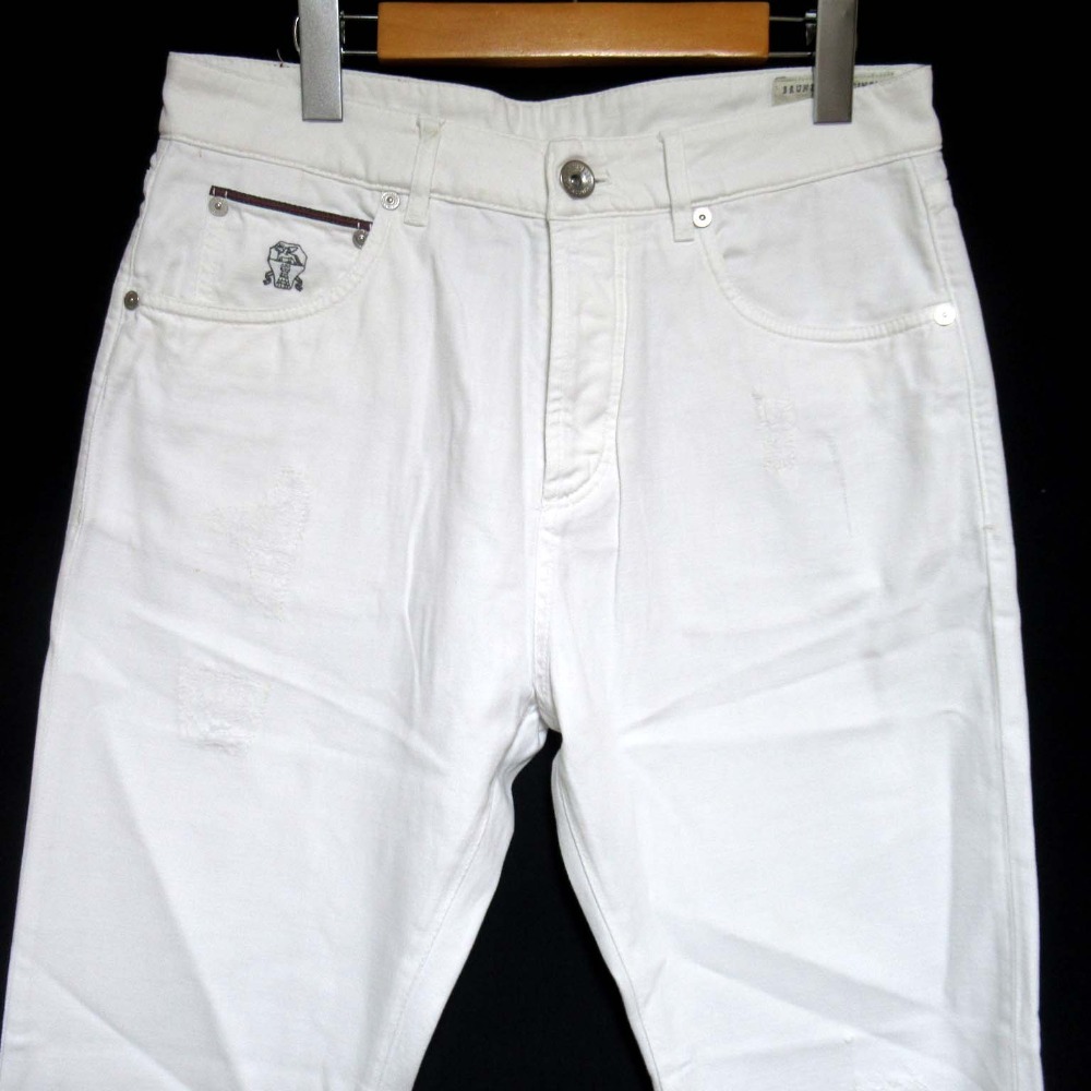 美品 BRUNELLO CUCINELLI ブルネロクチネリ LEISURE FIT ボタンフライ ダメージ加工 デニムパンツ Xサイズ ホワイト