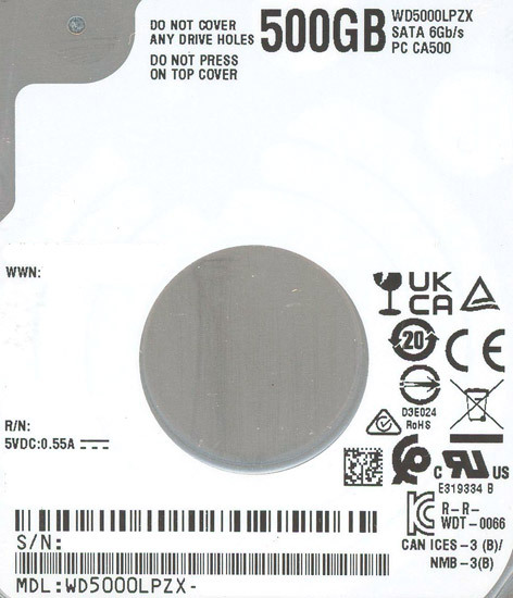 Western Digital製HDD WD5000LPZX 500GB 7mm | |