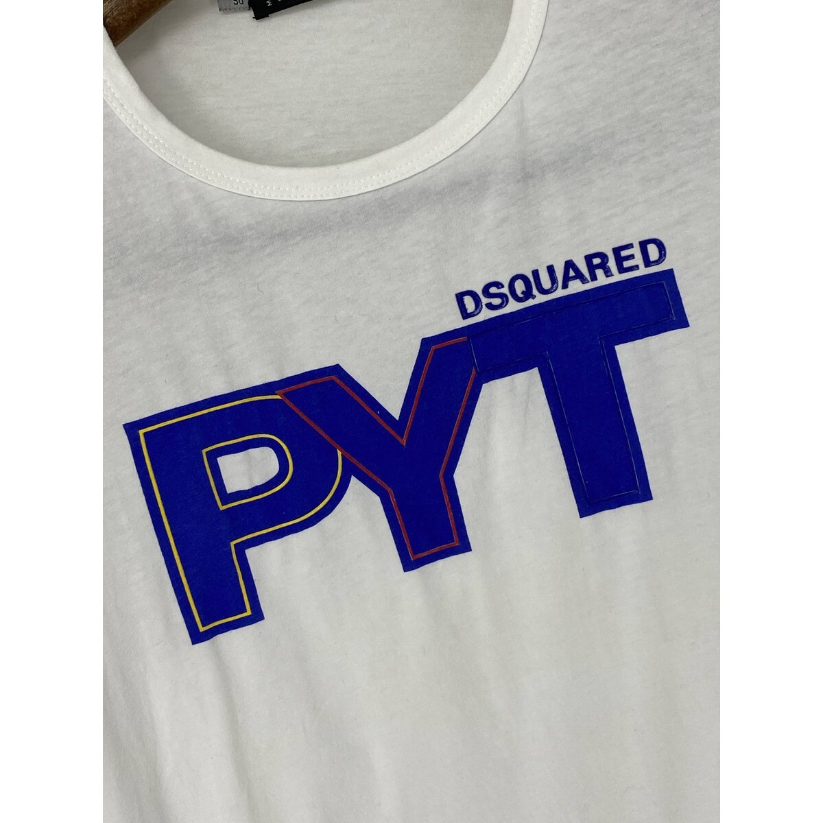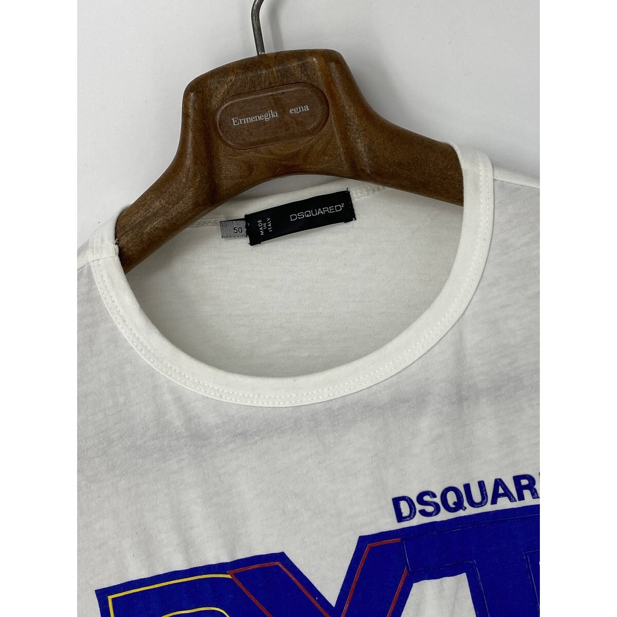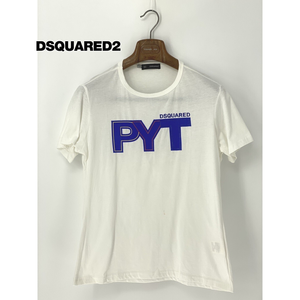 A8744/美品 春夏 DSQUARED2 ディースクエアード コットン 半袖 デカプリント Tシャツ カットソー 50 L程 白 イタリア製 メンズ ここのえ