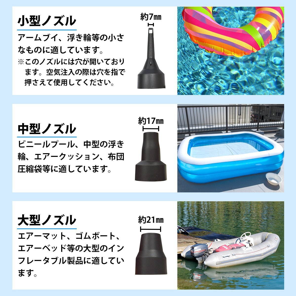 大きなアタッチメントに交換することで、エアマットや大きなゴムボートにも使用できます。