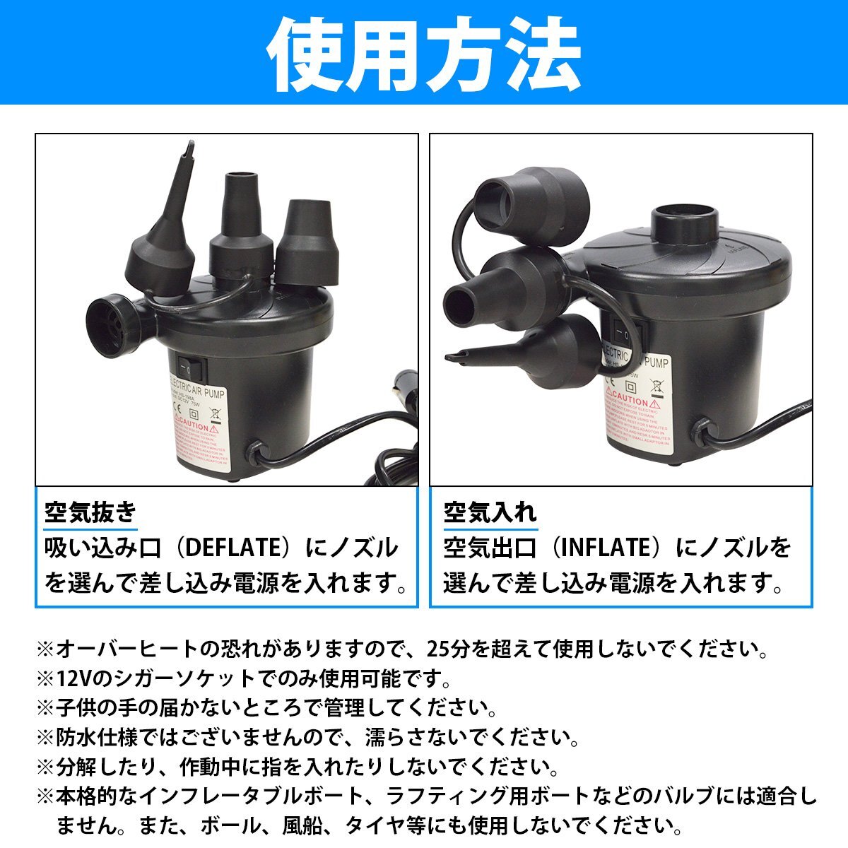 『12v 電動 ポンプ』車内で 空気入れ シガーソケット 給電 プール 海 キャンプ 浮き輪 ボート マット エアー エア 充填 車