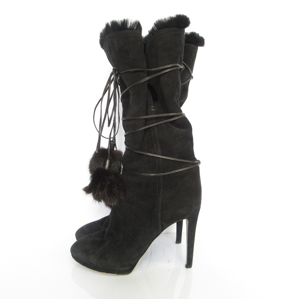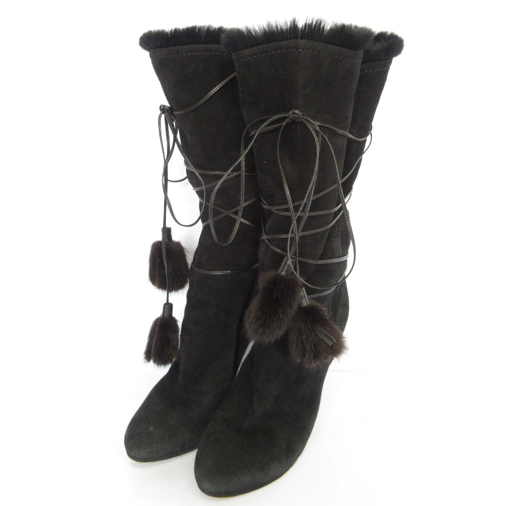 商品名:SERGIO ROSSI セルジオロッシ スエード ハイヒール レースアップ ロングブーツ 37 24cm ブラック