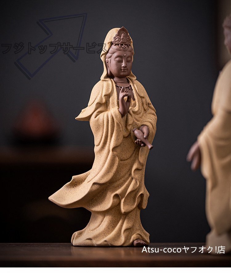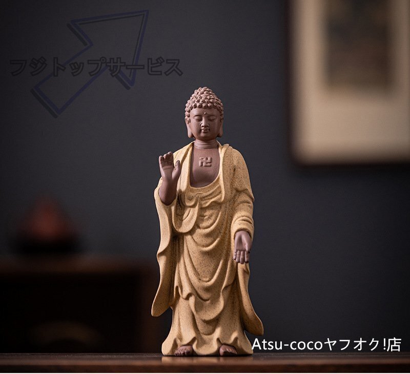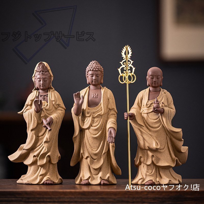 婆娑三聖 地蔵王菩薩 釈迦牟尼仏 観音菩薩 菩薩像 仏像 陶磁器セラミックス紫砂彩砂徳化窯 仏教美術 置物 供養 収蔵