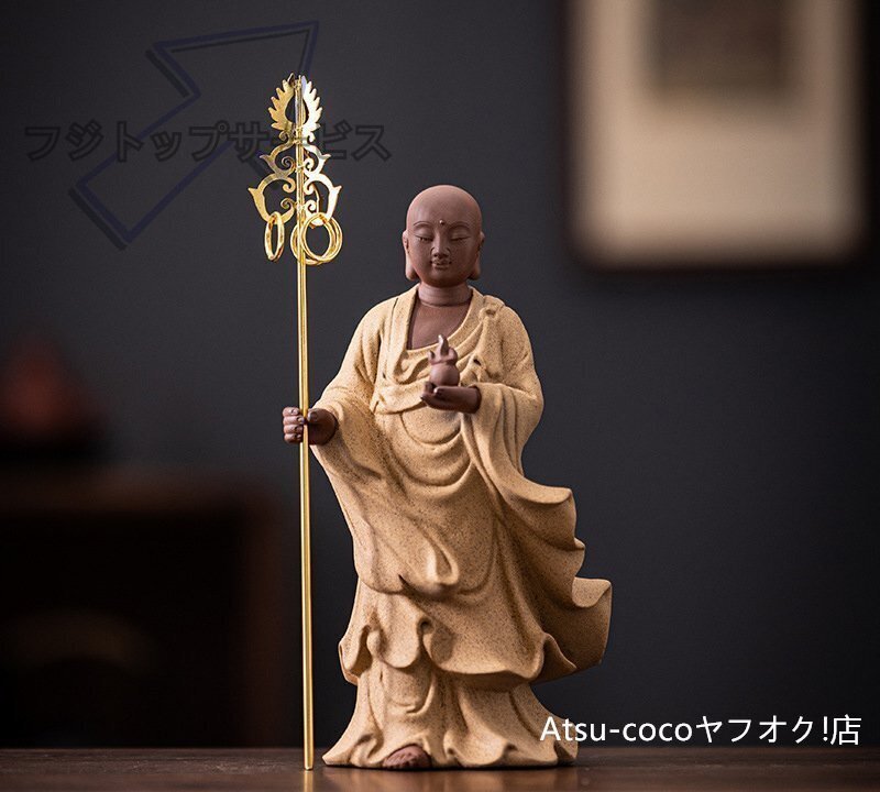 サイズ:地蔵王菩薩禅杖長23.1 cm長さ9.5 x幅7.2 x高さ19.7 cm釈迦牟尼仏8.1 x6.5 x20.8cm 観音菩薩9.8 x6.7 x20.8cm