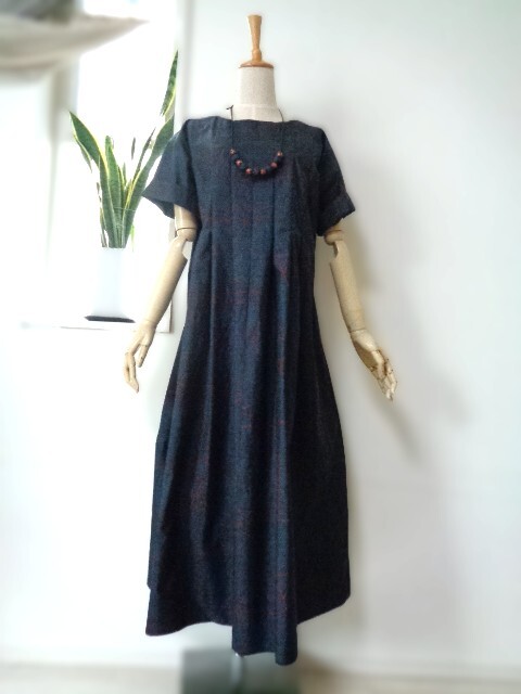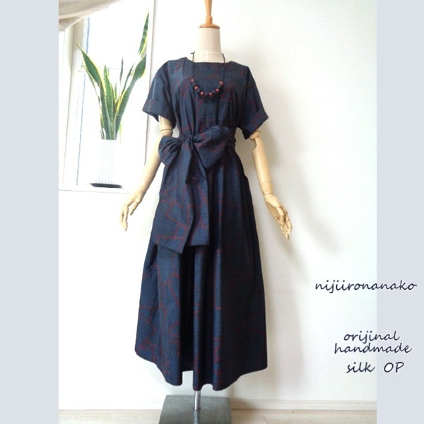 | ***お洋服のサイズ*** お手元のお洋服サイズと比べてくださいね 着丈・・・ 116㎝まで(落札後にご希望の着丈をお知らせください) 脇下周り寸法・・・115㎝ (L~LL位) ゆき丈・・43.5cm(後ろ身頃中央~袖口) 袖口・・40cm 多少の誤差はお許しください。 画像のトルソーは バスト84㎝ 9号サイズを使用しています。 PCでの色合いで出品しています ロックミシンをかけただけで 着丈をまだ仕上げていません 落札後にご希望の着丈(後ろ身頃中央の長さ)をお知らせください 躾付未使用の大島紬着物からタック付 ワンピースを作りました 紺・薄ブルー・レンガ色・黒色の糸で抽象柄に織られた 7マルキの柔らかくて 素敵な柄です 証紙付 前身頃にタック6本 後身頃には4本のタックを付け 肩線を落として袖付けしていますので ゆったりと お召しになれます 裏地は付いていません 被って着るデザインです 後ろ身頃に開きを設け ループでボタンを留めます 日除け 風除けの小さいストールをお付けしました 右脇線にシームポケット・ベルト紐・共布ネックレスを付けています 袖口に4㎝のスリットを付けていますので 折り曲げて短くもできます 流行に左右されることなく飽きも来ず 永く幅広い年代の方に着ていたただる 大島紬のワンピースです 軽くて小さく畳めますので旅行にも最適です クリーニングに出されることをお勧めします ご家庭でのお洗濯はネットに入れウール用洗剤で押し手洗いでお願いします。 大島紬は ゴブラン織り ペルシャ織 と三大織物の一つに認定されるほど価値が高い織物です 堅牢さがありますので何代にもわたって伝えることができ 永く着ることで体に馴染み、色も深みを増します シワになりにくく、絹100%からなる艶感のある軽い肌触りが特徴で お肌に優しく シュシュっと絹鳴りの心地良い音がします 絹を約5分以上前洗浄すると縮みます。洗濯の前に水に絹を長時間放置すると、 繊維が引き締まってねじれるため、収縮が起こります お湯で絹を洗うことも縮小します 絹の衣服は、熱い乾燥機で乾かすとサイズも小さくなります 着丈・配送方法 等は2日以内にご連絡いただきますようお願いいたします まとめて取引ご依頼は受け付けておりますが レターパックプラス → ¥600 ゆうパック・宅急便EAZY → ¥750 ゆうパケット・ネコポス → 230×2 ¥460 の方がお安くなります |