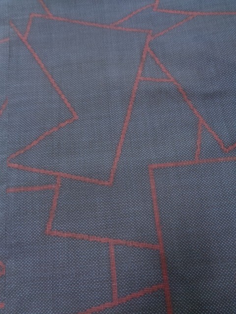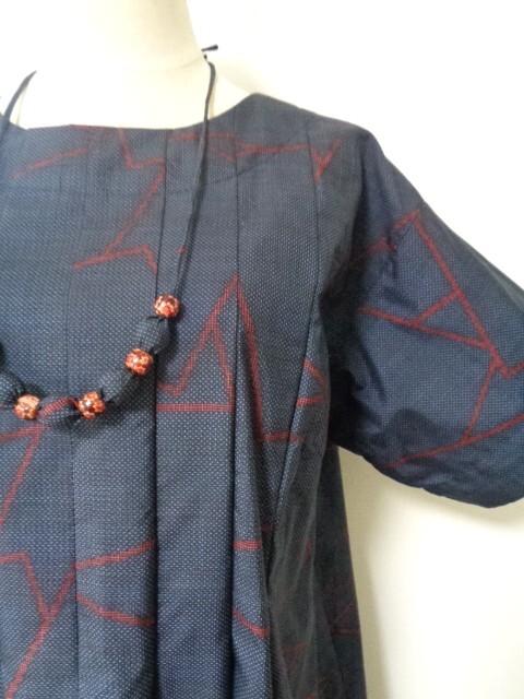 | 本場大島紬 7マルキ 抽象文様 証紙付き 正絹 前後タック 紺系 共布ネックレス付 |