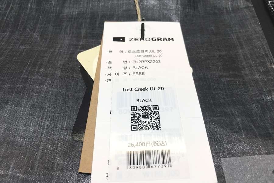 【送料無料】大阪)◆◆未使用 ZERO GRAM ゼログラム LOST CREEK UL 20 BLACK バックパック