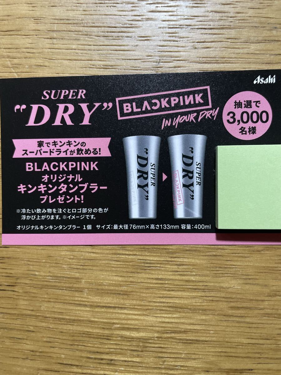 BLACKPINKオリジナルキンキンタンブラーが当たる応募券10枚です。
