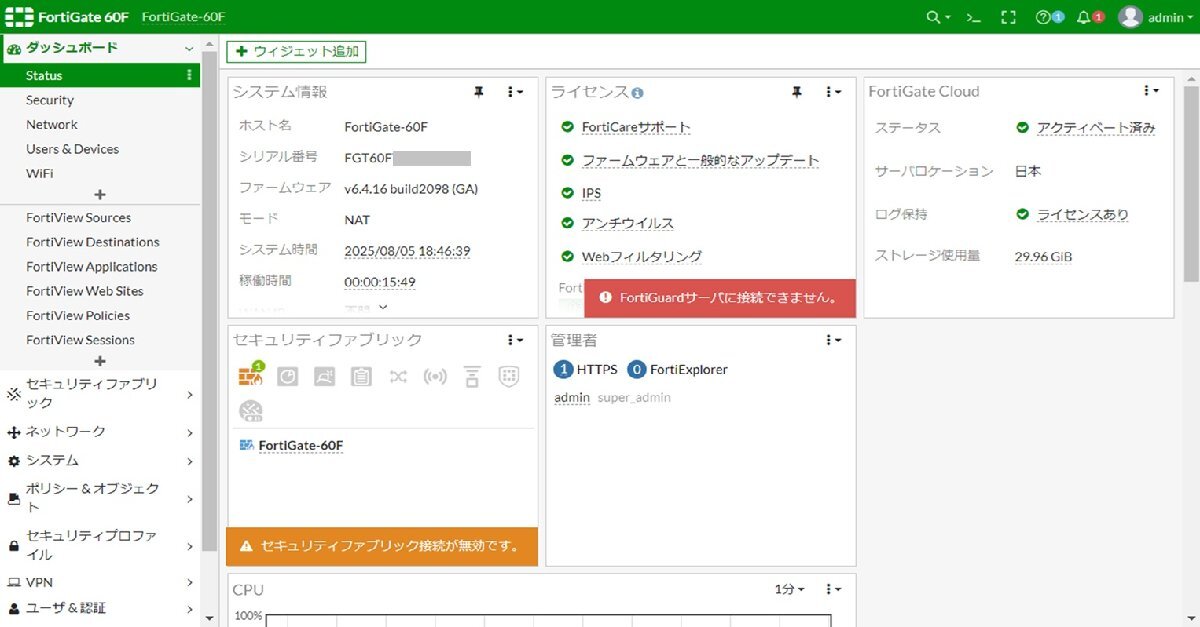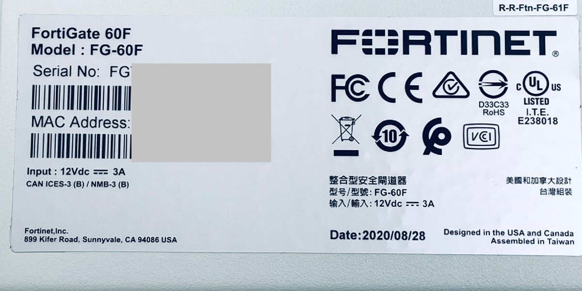 ライセンス期限:2026/07/21<中古Aランク 清掃済 美品> FORTINET FORTIGATE-60F FG-60F UTM 初期化済 送料無料 領収書発行可