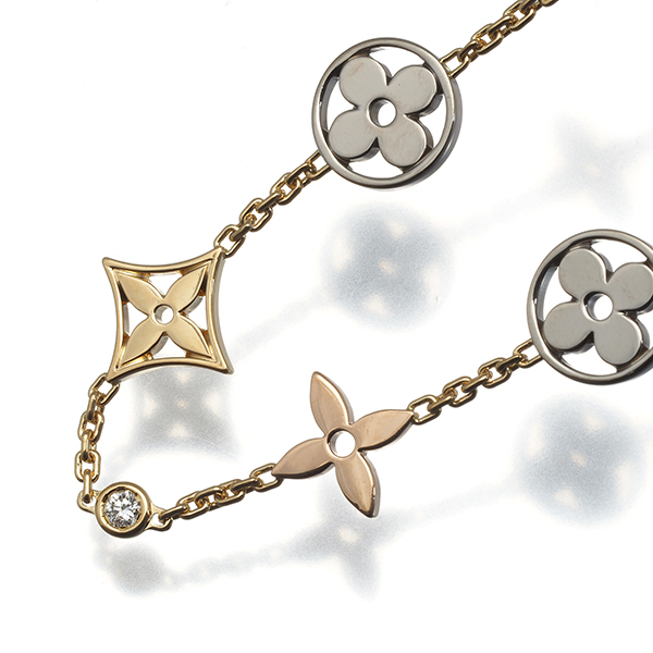 スリーゴールドを使用したモノグラムフラワーの優雅な煌めきと共に厳選ダイヤモンドの輝きを留めたルイヴィトンの美しいファインジュエリーです。 |