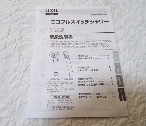 LIXIL(リクシル)  INAXのエコフルスイッチシャワー 1台 取り扱い説明書付き  USED品