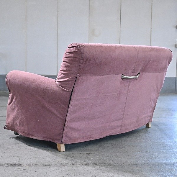 パープル 2人掛け ソファ ローソファ キャスター付 スエード 移動便利 コンパクト リビング ダイニング ビンテージ