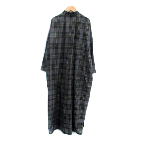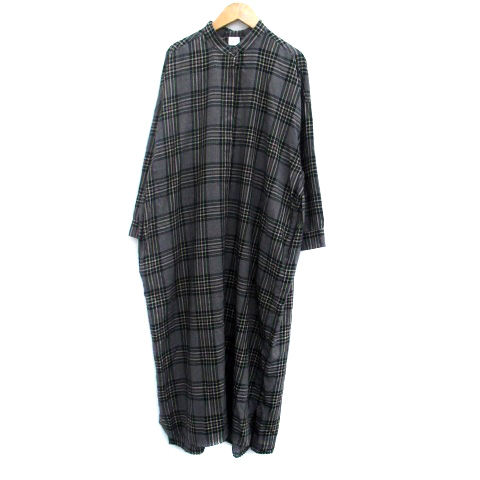 アーバンリサーチ ドアーズ シャツワンピース バンドカラー 長袖 ロング丈 チェック柄 ONE マルチカラー チャコールグレー レディース