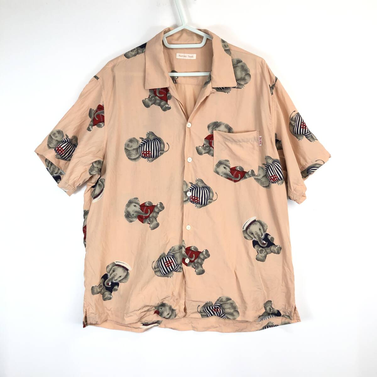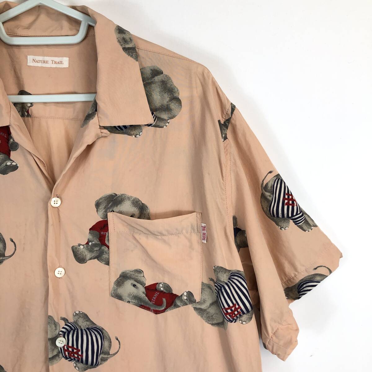 NATURE TRAIL ネイチャートレイル 半袖レーヨンシャツ 開襟 象 ゾウ Mサイズ ピンクハウス P077KFB03E