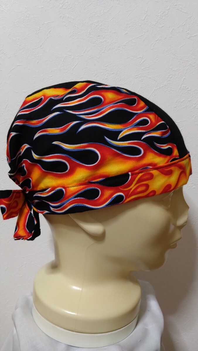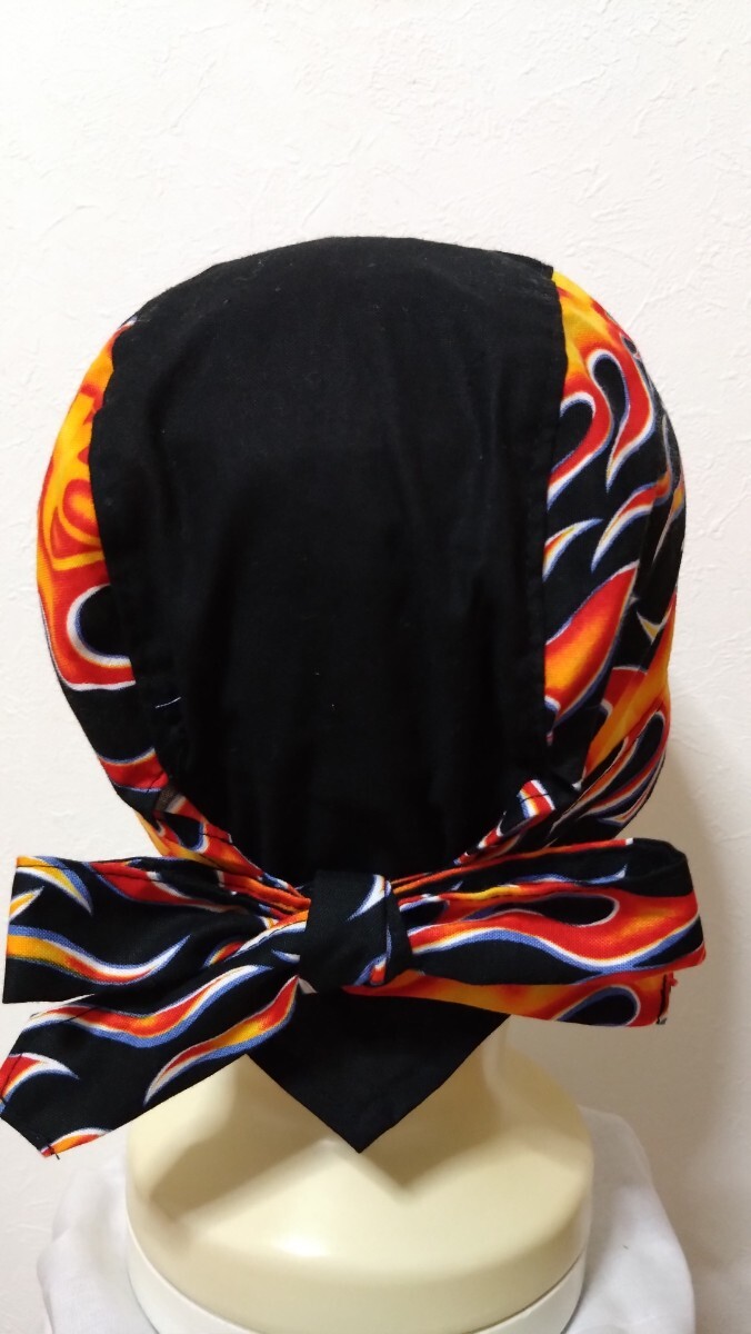 短★バンダナキャップ★ハンドメイド 炎×無地 ファイヤー 赤