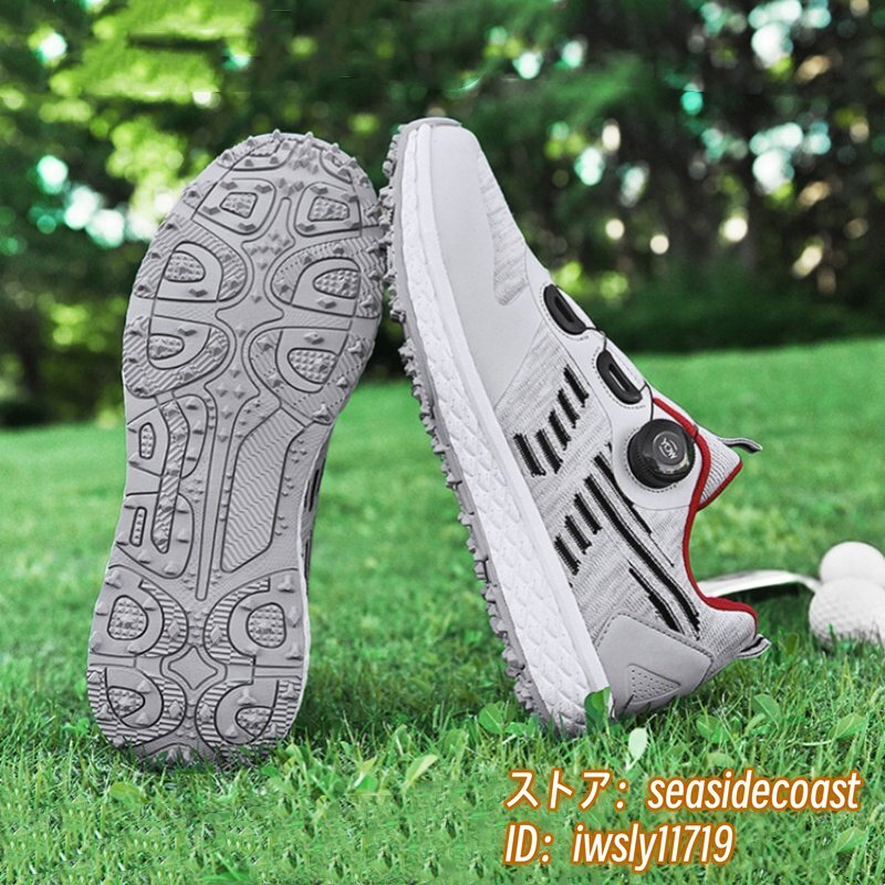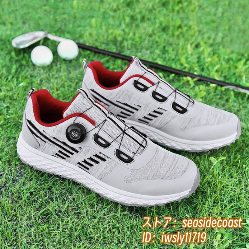 高級品 メンズ ゴルフシューズ 新品 ダイヤル式 運動靴 4E 幅広い Golf shoes スポーツシューズ フィット感 軽量 防滑 弾力性 灰色 26.0cm
