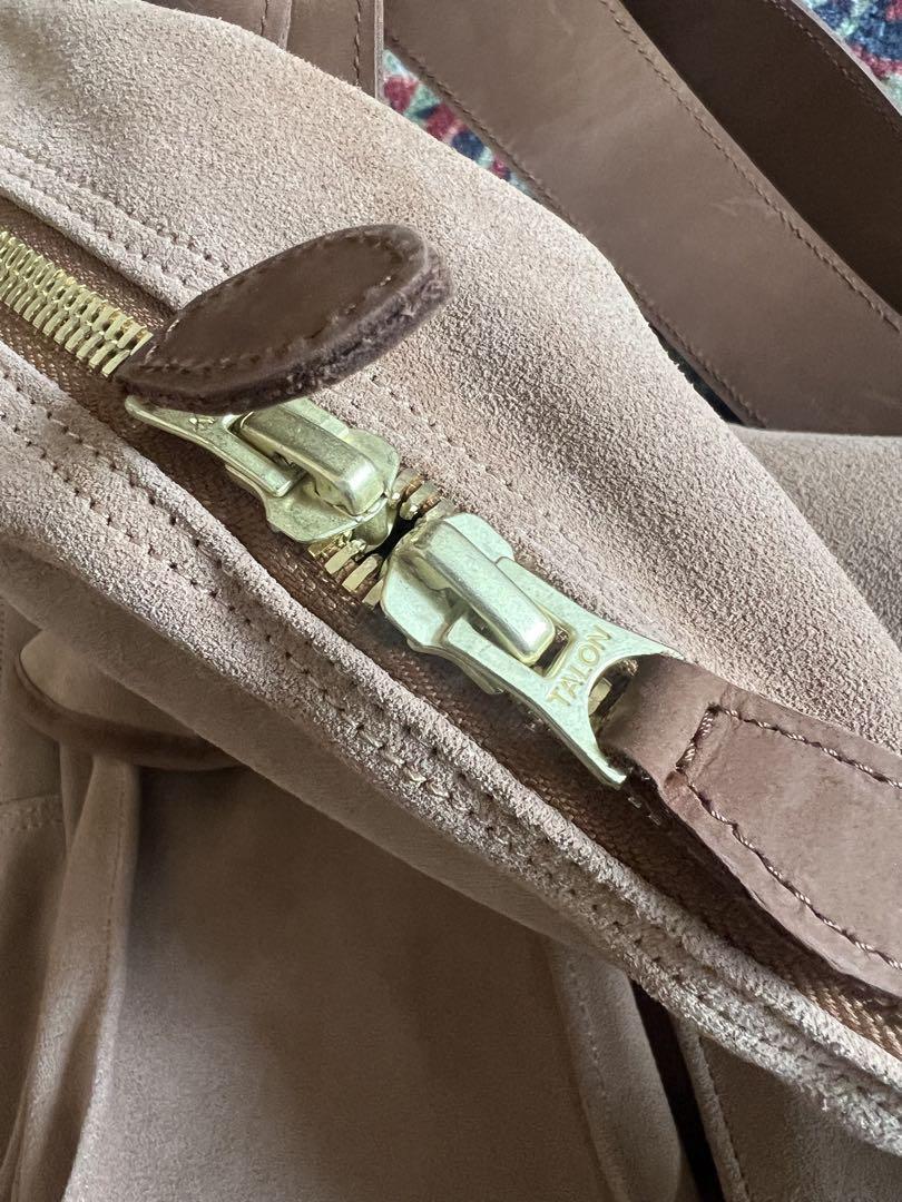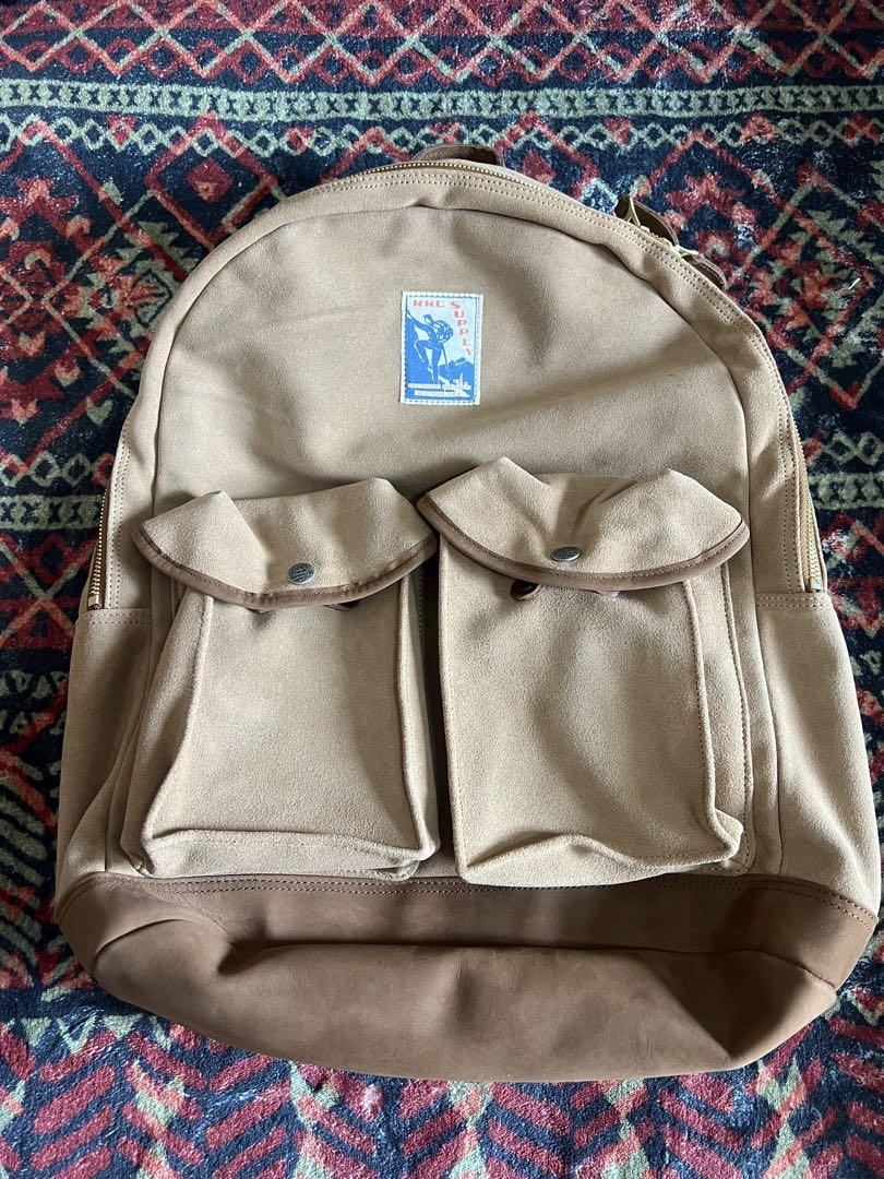 サンシャインの定番マウンテニアリングコレクション。スエードと輸入牛革を使用し、2種類のレザーが印象的な質感を生み出しています。TALONジッパーを 合わせた、この頑丈なAmi Khakiトップは、真のアメリカンレトロを体現する一枚です。デザートカラーはジーンズやオーバーオールと相性抜群です。