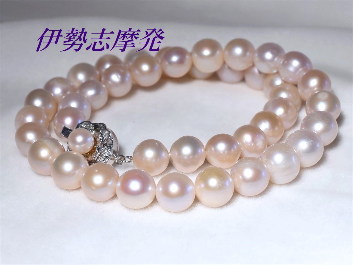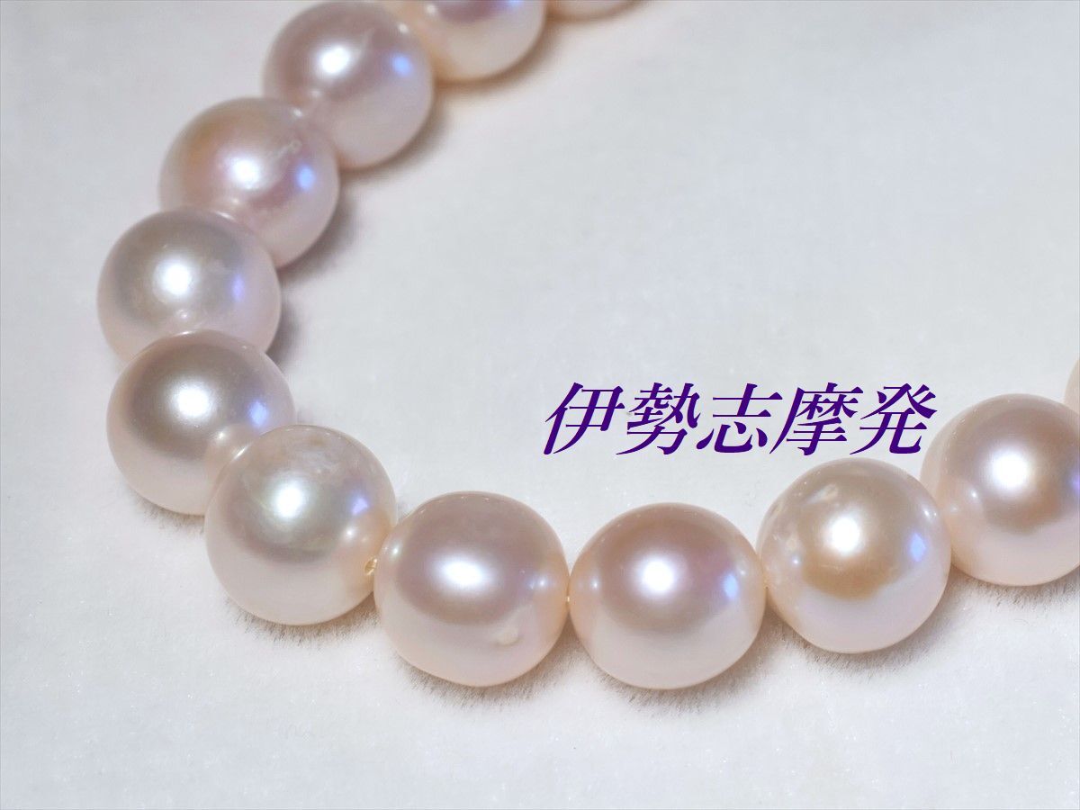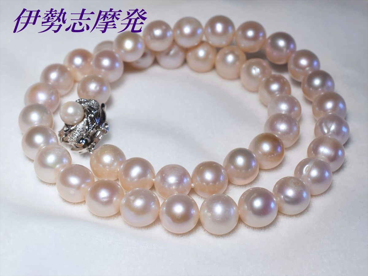 【真珠の種類】 淡水天然真珠 【珠サイズ】 10,5㎜-端9,7㎜ 【珠の形状】 大粒丸系 【色】 ホワイトピンク 【巻き】 良い◎ 【照り】 良い◎ 【キズ】 少し 【エクボ】 カスレ少し 【金具の材質】 シルバー製 【デザインの大きさなど】 クラスプ含んだ全長43cm ◆お洒落♪王道ホワイトの大粒パールネックレスは、流行に左右されない永遠のスタンダードアイテムです。◆ 様々なシーンを輝かせる洗練された淡水パール、ピンクの出た優しい色合いのネックレスです。デコルテを美しく飾り、大珠なので存在感も抜群です! 天然パールのためカスレや瑕は混ざりますが、欠けや剥がれもなく着けていて(社交距離だと)目立つものではありません。 冠婚葬祭は勿論の事パーティーシーンなどにも充分相応しい存在感&高級感があり、またTシャツやニットなどデイリーカジュアルに合わせれば一気にトレンド感のある大人スタイルになります。 大きく高級感があり、お洒落なデザインのシルバークラスプで仕上げました。大珠真珠なので落下防止のフックも付いていて安心です。 フェイクパールにはない重厚感と長くお使い頂ける本物の真珠を是非、淡水真珠で一本お揃え下さい。フォーマル過ぎずお洒落度が高い、使い勝手の良い大変重宝するアイテムです。 値上がり商品ですが、在庫があったので1万円を切っての大サービスで・・・2本お出しします。お目に留まったらお早くどうぞ。 | ||||||||