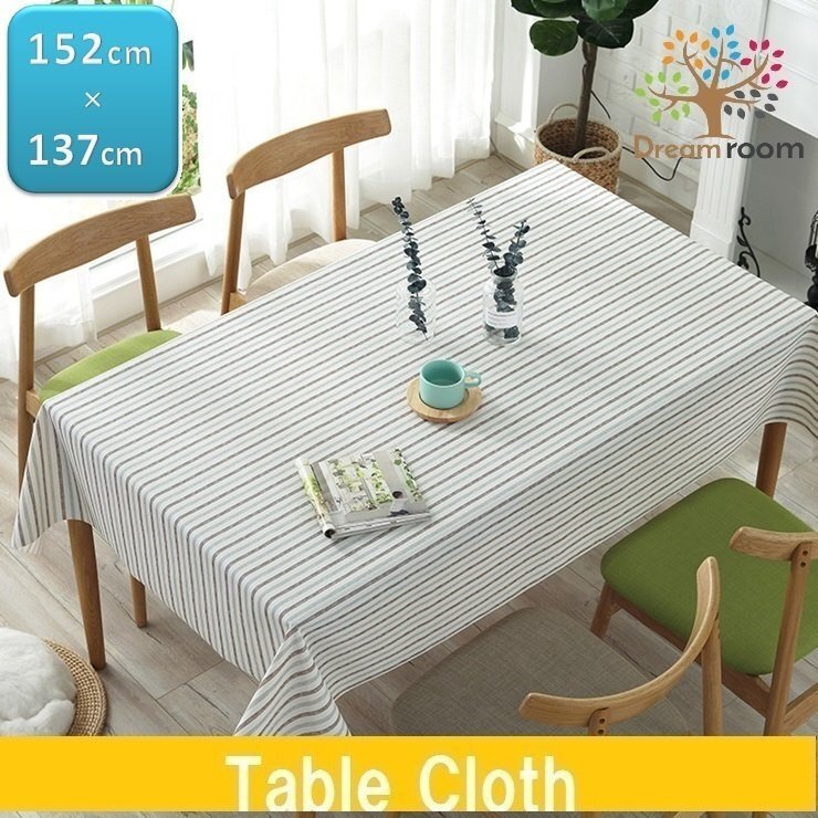テーブルクロス ストライプ PVC製 防水 防油 加工 長方形 152cm×137cm ランチョン ティーマット テーブルリネンセットI-023