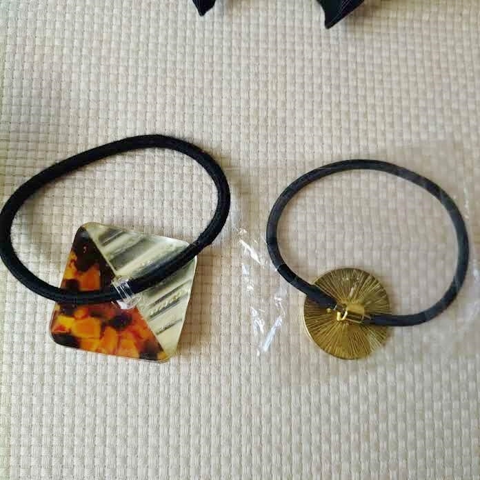 5点 カチューシャ ヘアゴム リボン バレッタ/黒 ブラック 赤 ピンク べっ甲風 合成皮革 布 青 ブルー 茶 金 ゴールド 髪 ピン留め レザー風
