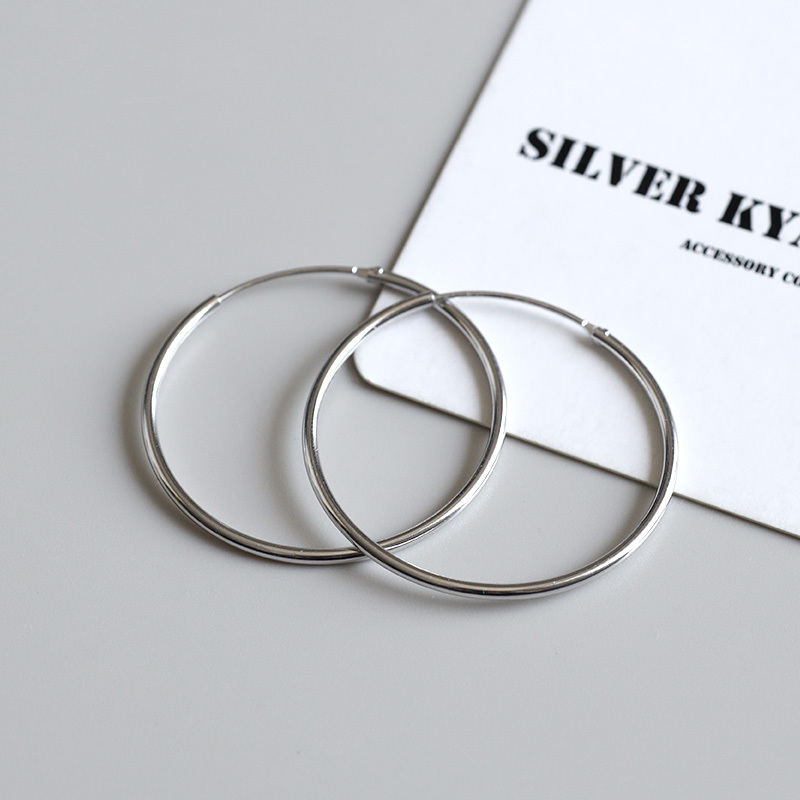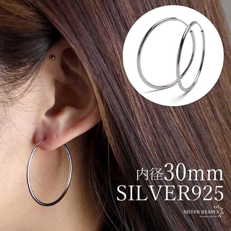 シルバー925素材 フープピアス 2点セット 内径30mm シンプルピアス レディース シルバーピアス リングピアス 両耳