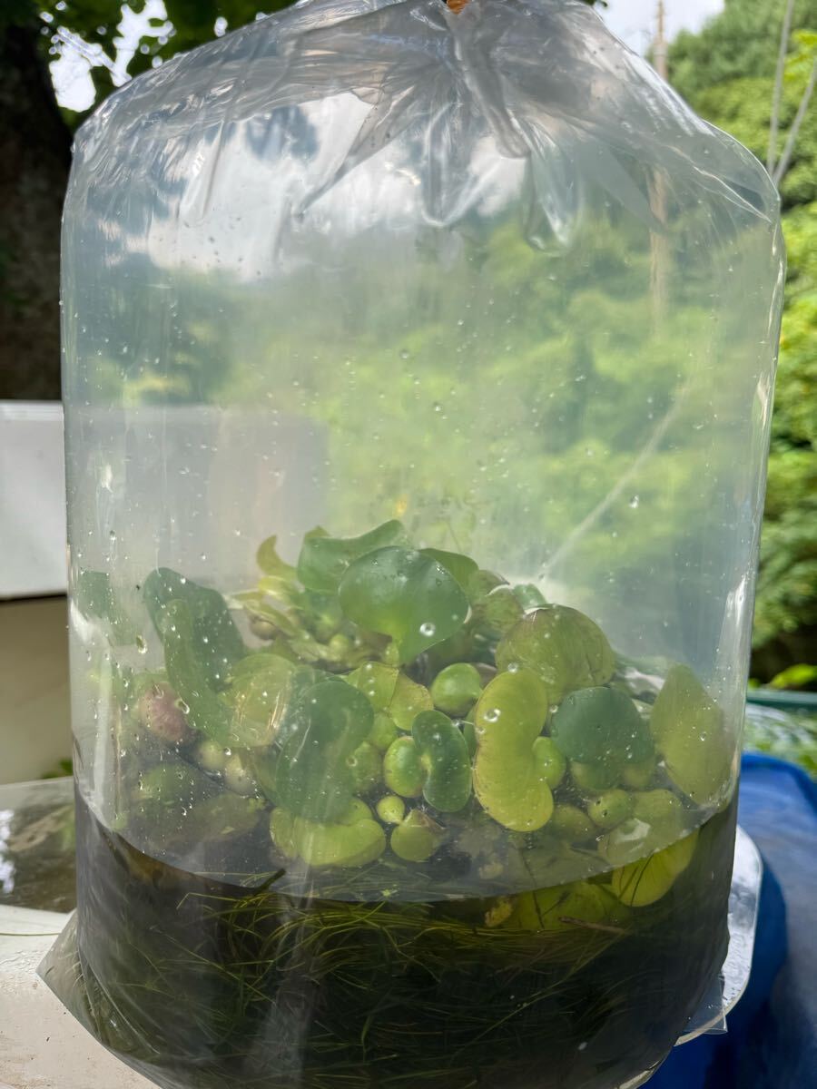 洗面器1杯のナヤスとホテイ草20個のセットです
