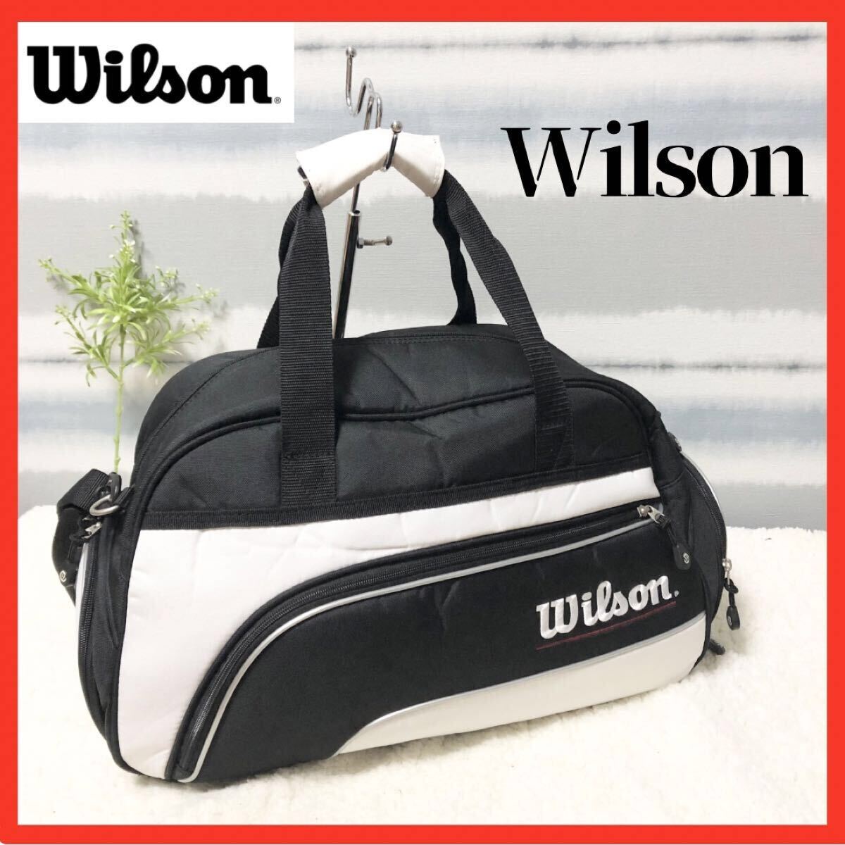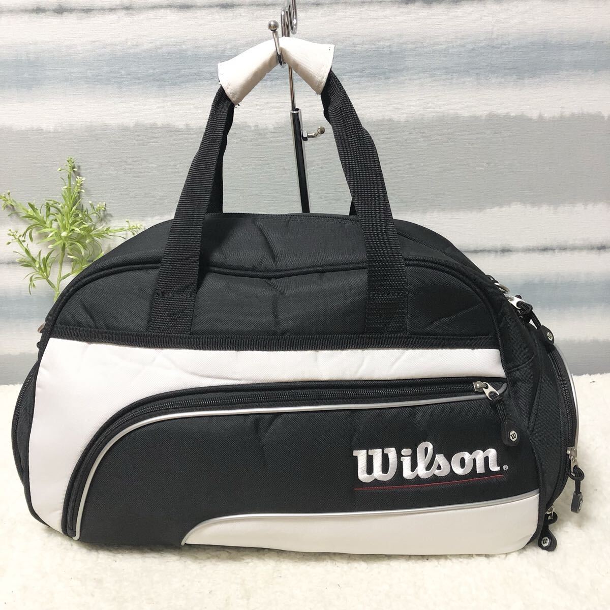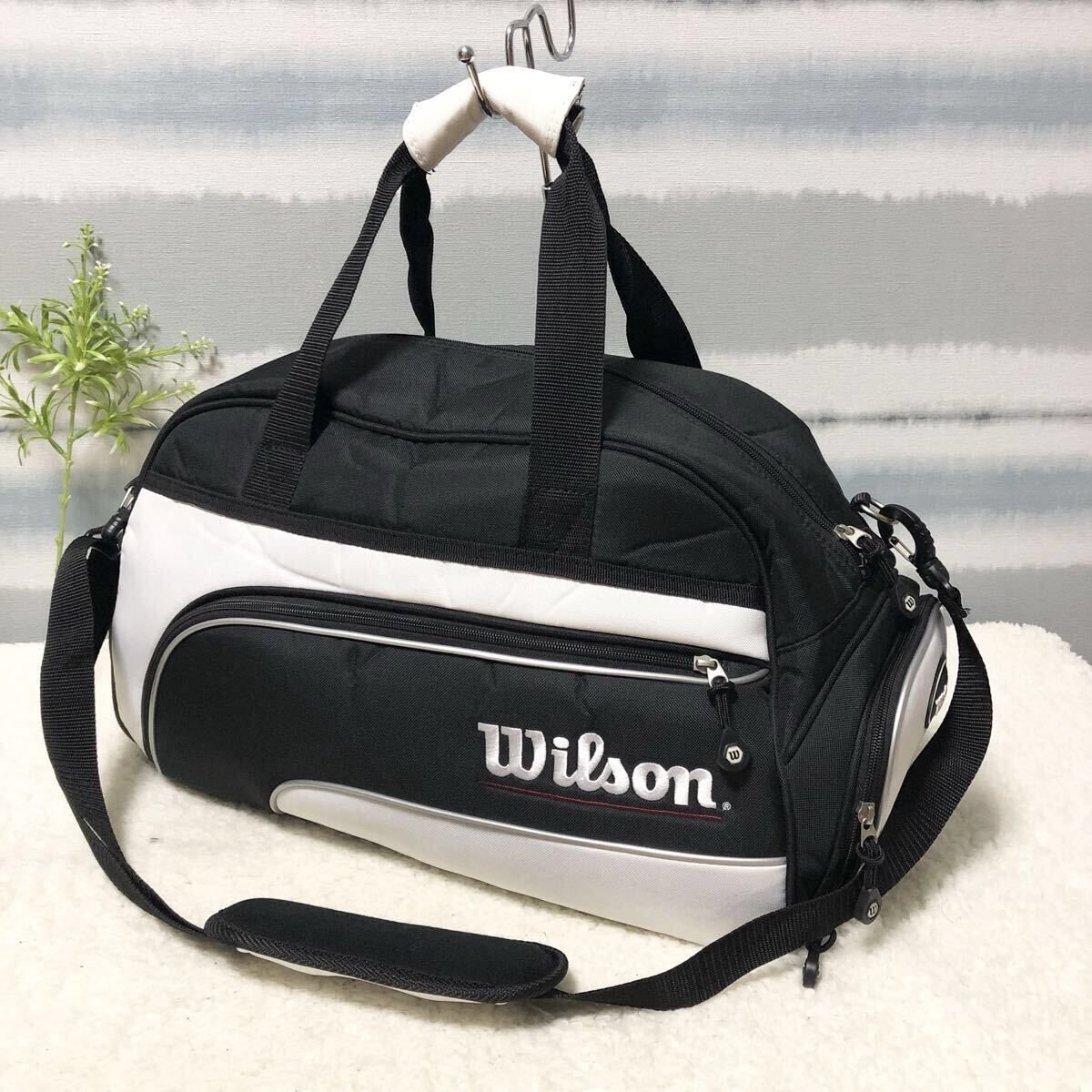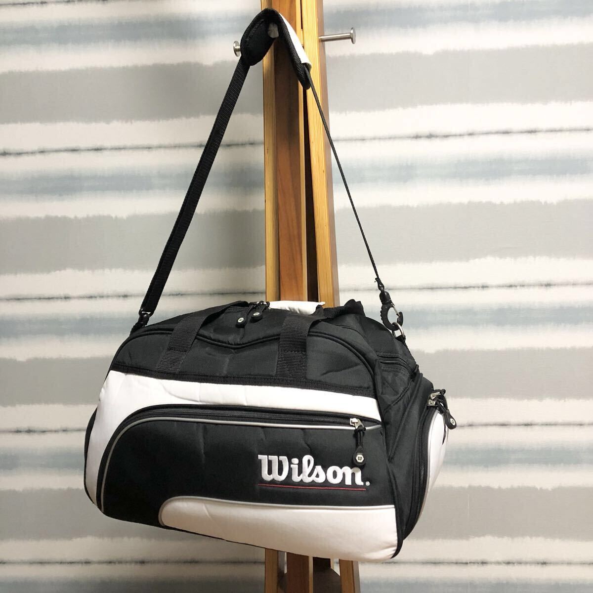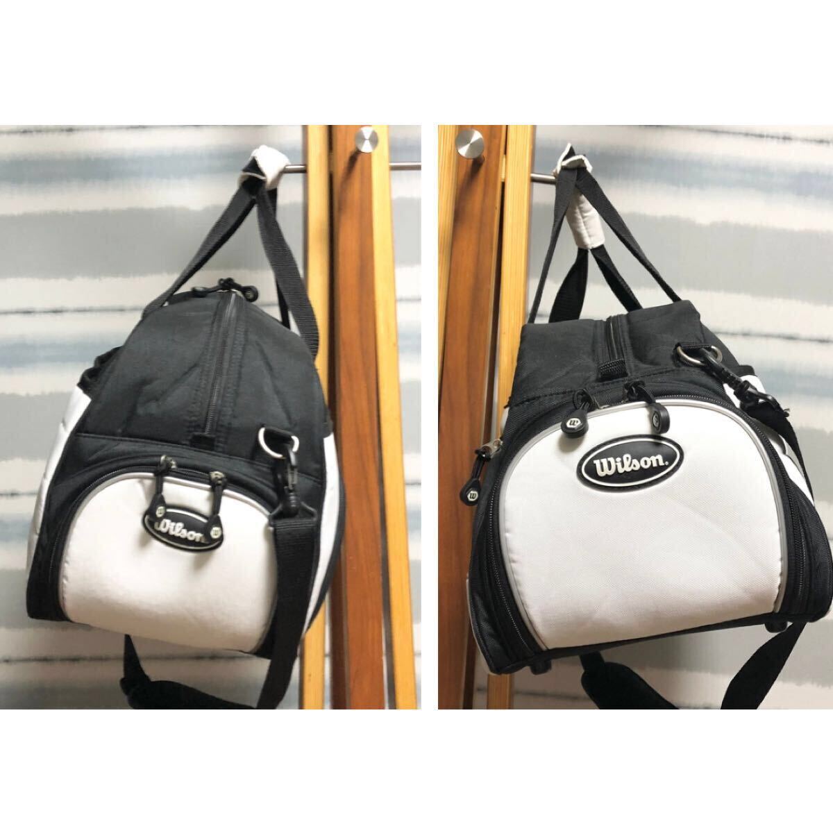 ☆激レア品/未使用!【Wilson】ウィルソン 2way テニスバッグ ボストンバッグ 白×黒 ダッフルバッグ スポーツバッグ ゴルフバッグ ハンドバッグ ショルダーバッグ 刺繍 ロゴ ユニセックス