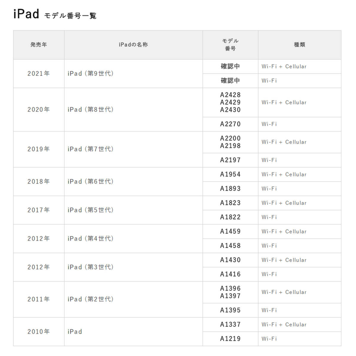 第8世代 ipad 10.2インチ 2020のモデム番号はA2428、A2429、A2430、 A2270