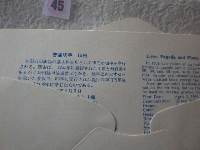 FDC 航空切手 円単位五重塔 15 11 1962年 説明書有 ncc●45●同梱大歓迎