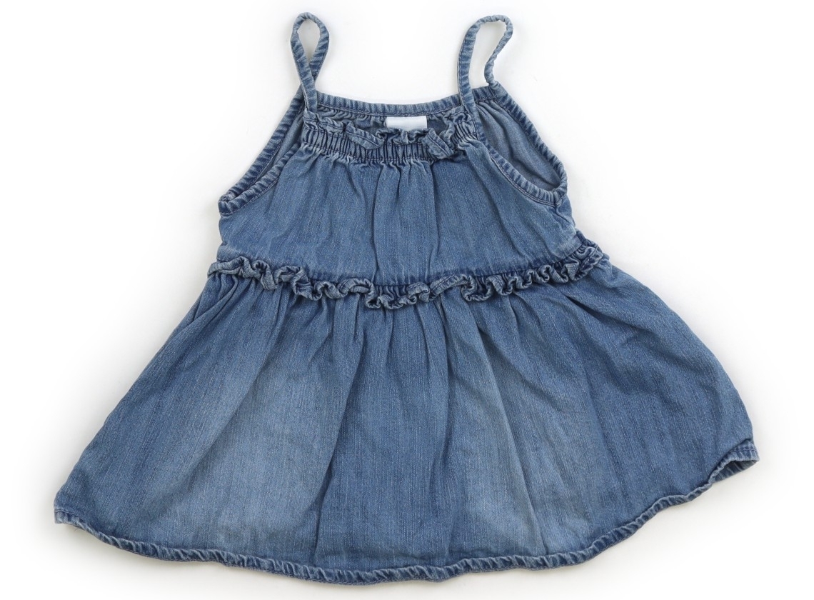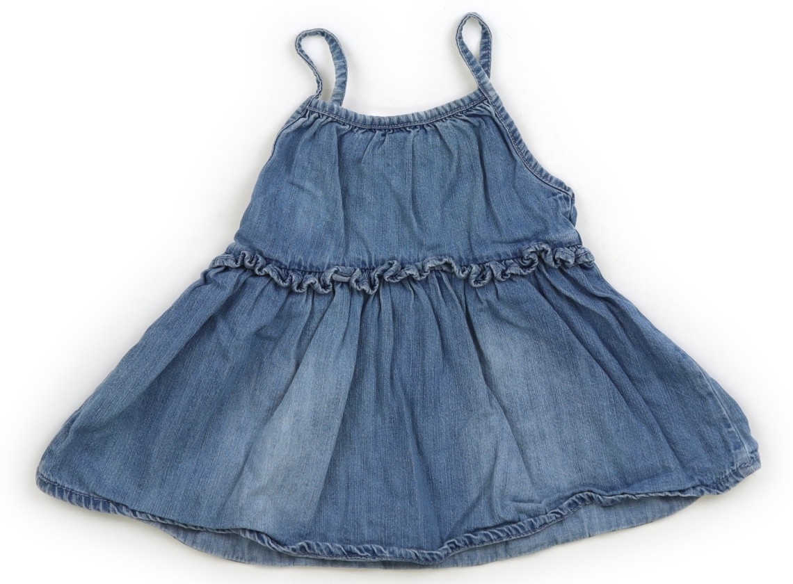 ダンガリー風生地、胸元にゴムが入ってます。色褪せ使用感は見られますが、目立った汚れはなくまだまだお使いいただけそうです。