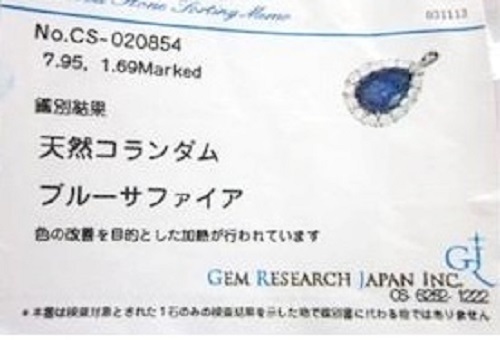 | * Pt900 * サファイア:7.95ct * ダイヤ:1.69ct * 全体大きさ:縦2cm(カン含まず)×横1.5cm(最大幅) * サファイア大きさ:縦1.5cm×横1cm(最大幅) * 重さ:7.6g * 付属品:ソーティング付き(ジェムリサーチジャパン) * ランク:A ※ルーペでキズを確認しました。(画像参照) ※詳細はお気軽にお問い合わせください。 (PNS PND PPN)21981