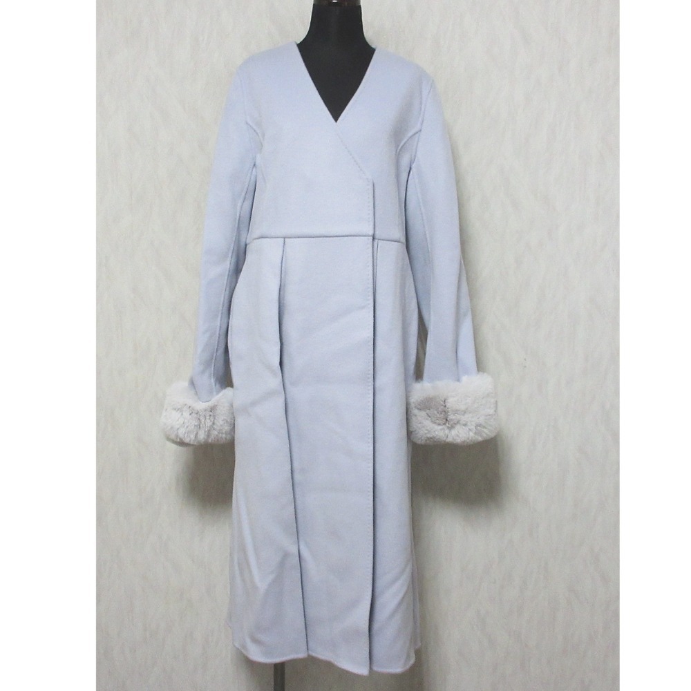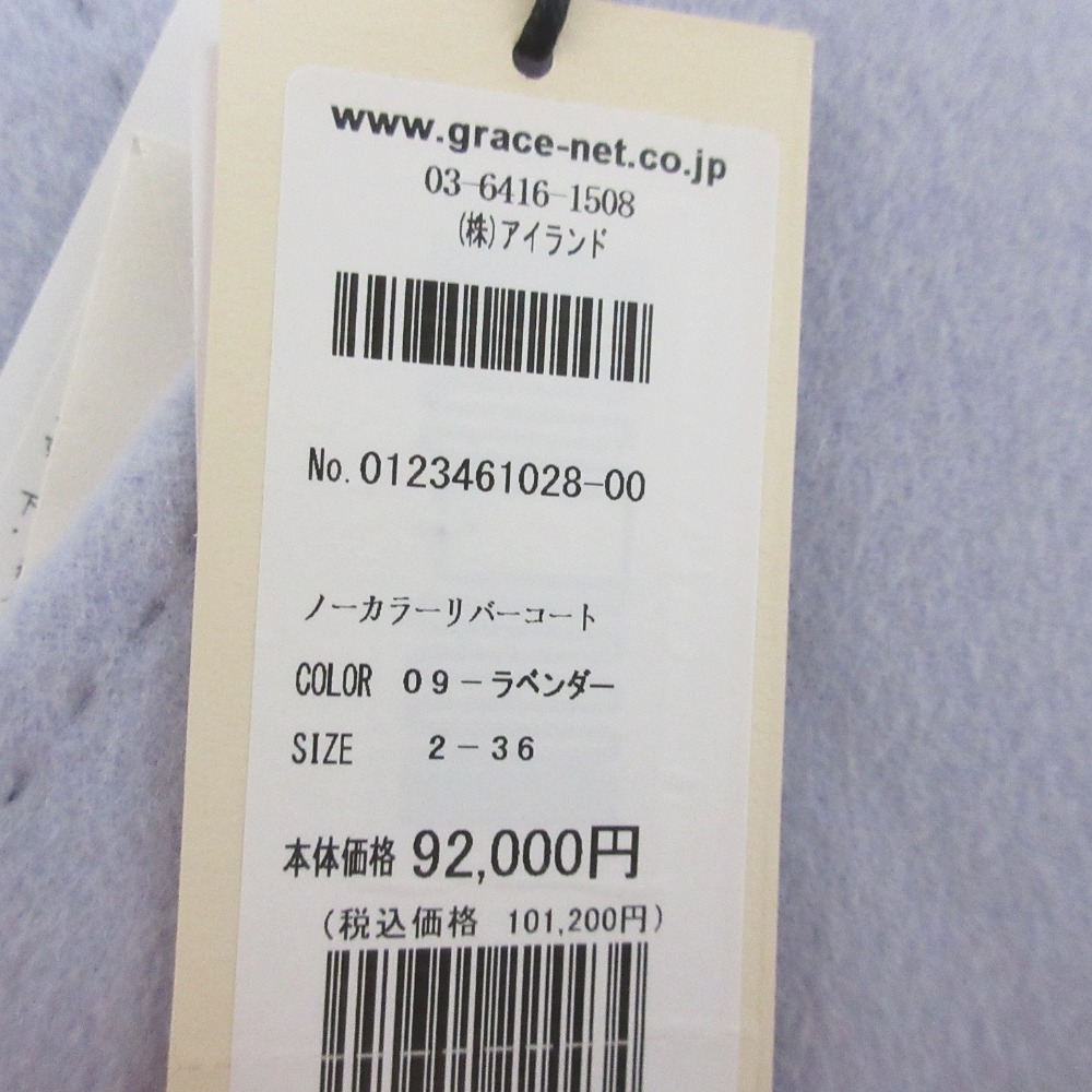 美品 23AW GRACE CONTINENTAL グレースコンチネンタル ストール付き ノーカラーリバーコート 0123461028 36 ラベンダー