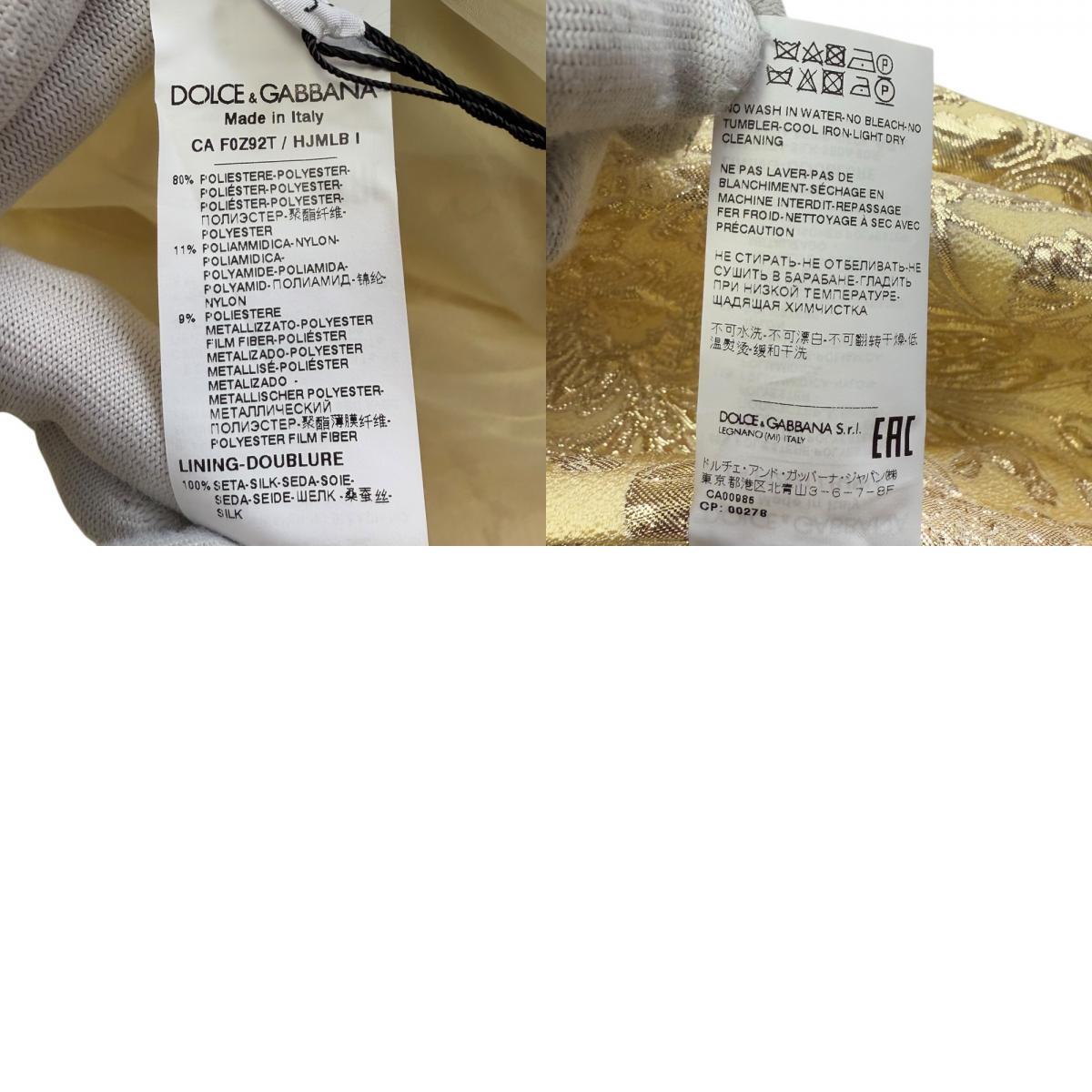 未使用 21SS DOLCE&GABBANA ドルチェ&ガッバーナ 裏地シルク100% ジャガード刺繍 ポンチョ ロングコート 36 ゴールド