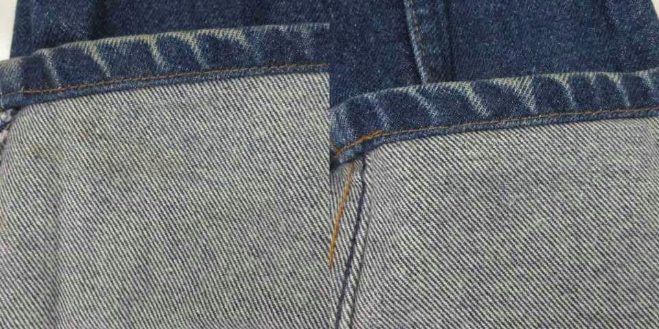 【状態】この商品には下記のようなダメージがあります。 ・全体的に若干の色落ち(8枚目画像参照) ・フロント所々に茶色い汚れあり(8枚目画像参照) ・右裾裏汚れあり(9枚目画像参照) ・両裾色落ち(9枚目画像参照) ※全体的に中古品としての使用感と上記のようなダメージがありますが、通常使用には支障のない商品です。 掲載写真や記載内容をご確認いただき、ご理解の上ご購入ください