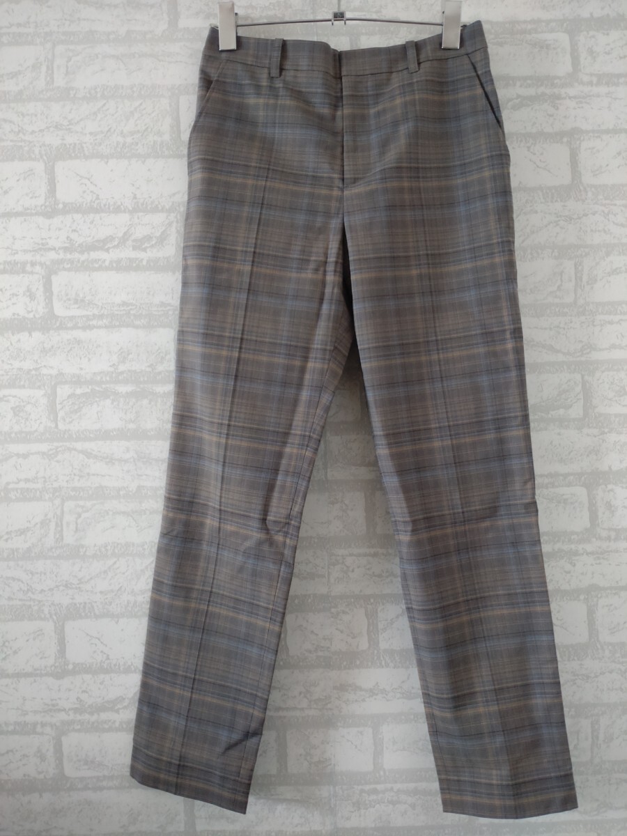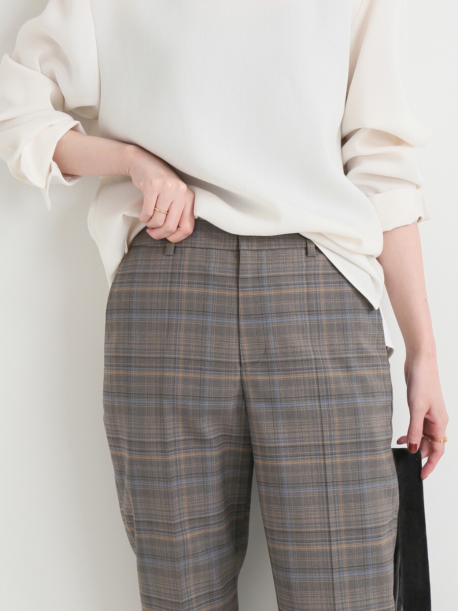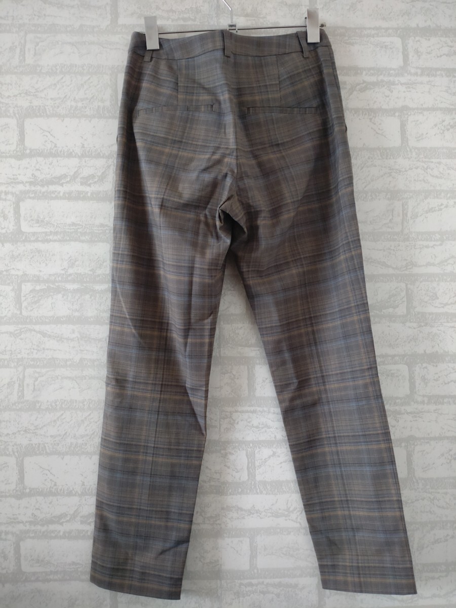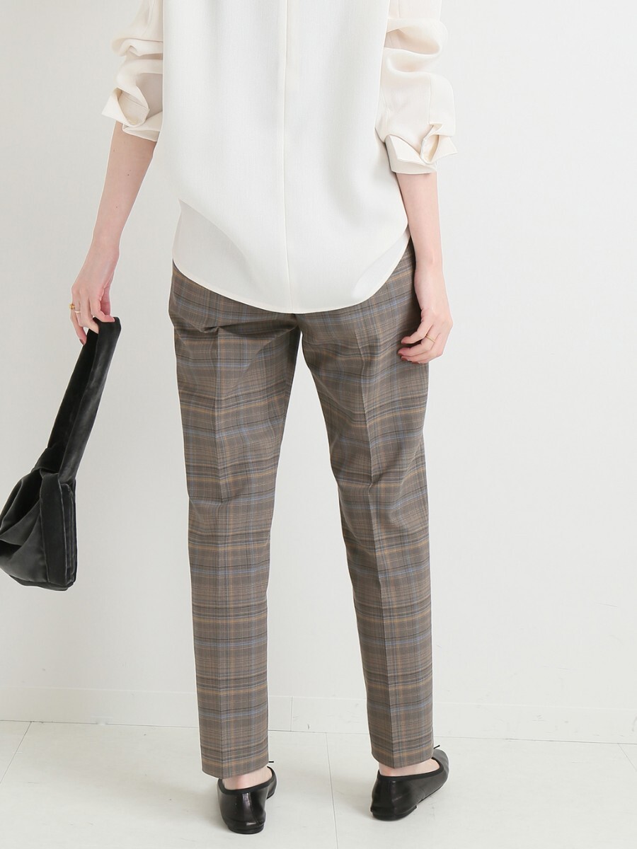 グレーをベースにモダンな差し色を加えたオリジナルのチェック柄です。形のきれいな細身のスティックパンツでストレッチ性もあるので、履き心地も抜群です。