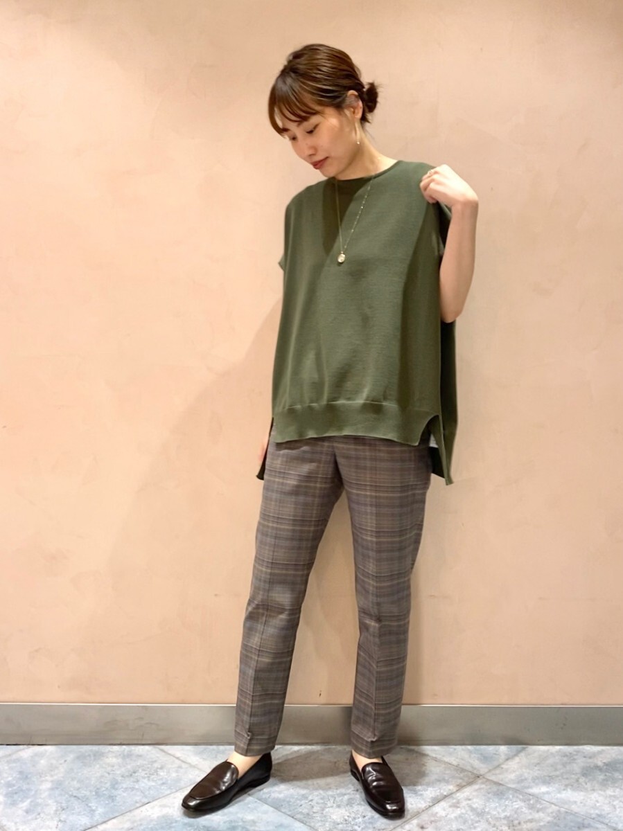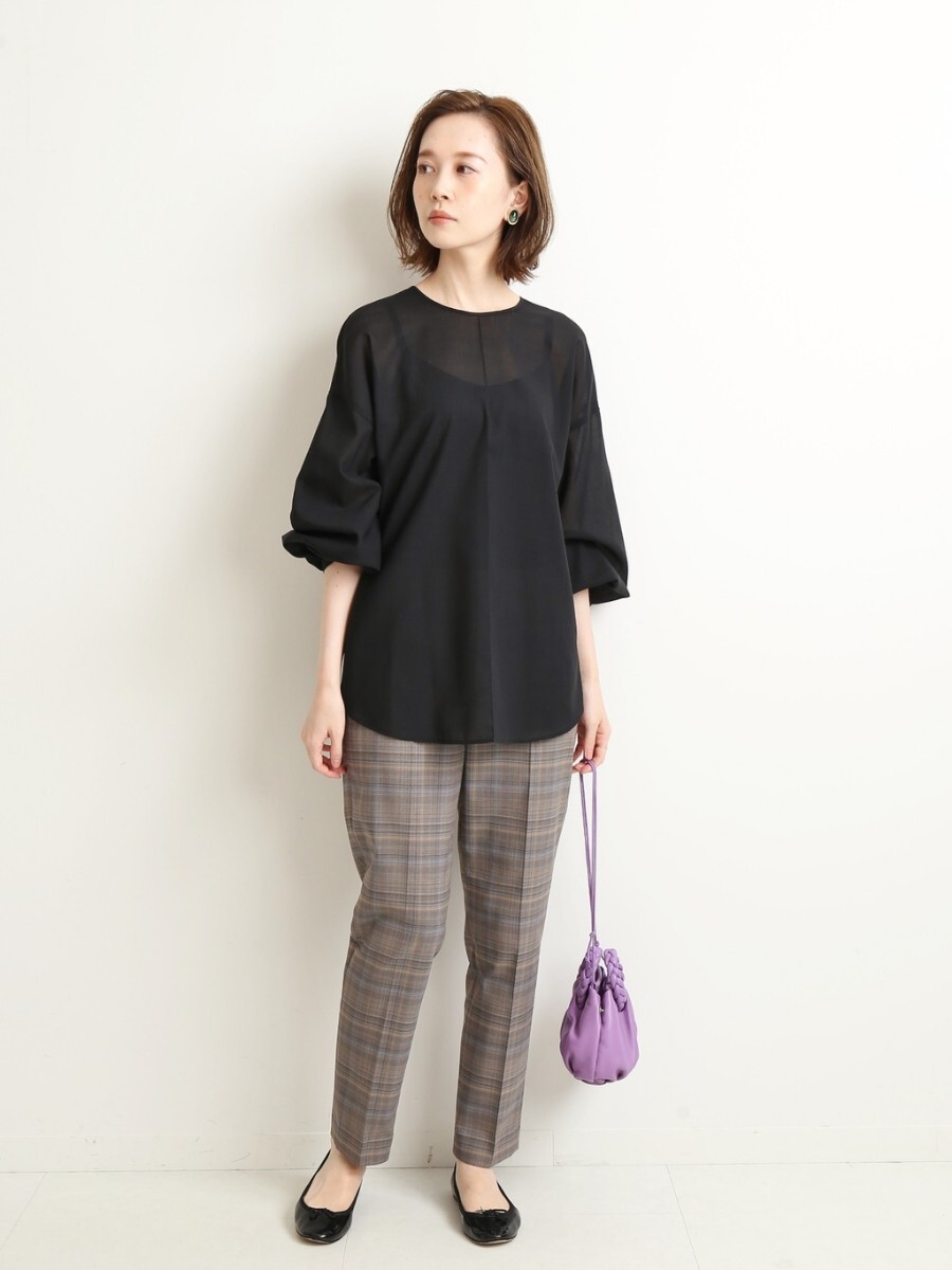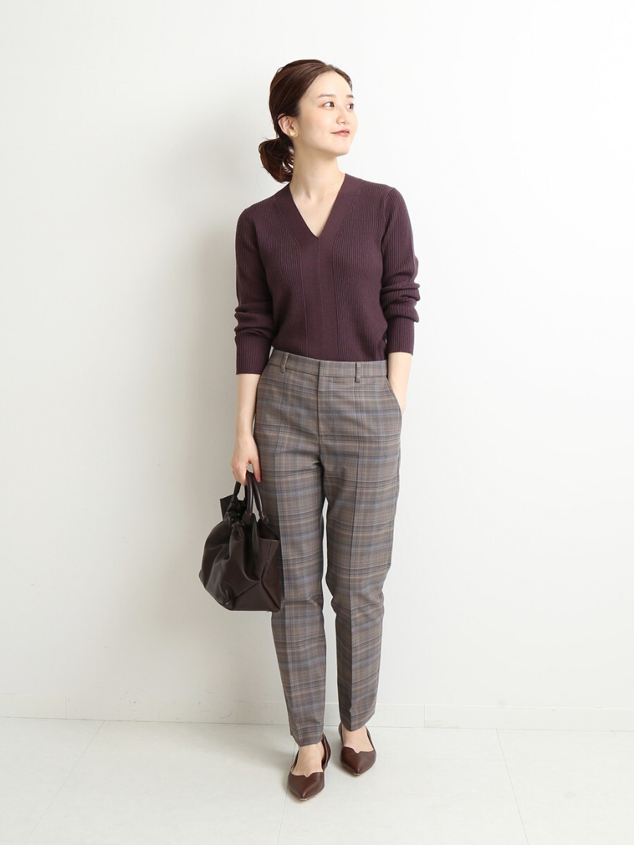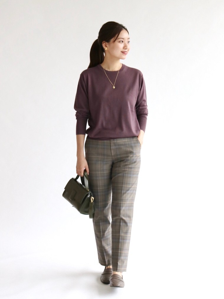 グレーをベースにモダンな差し色を加えたオリジナルのチェック柄です。形のきれいな細身のスティックパンツでストレッチ性もあるので、履き心地も抜群です。
