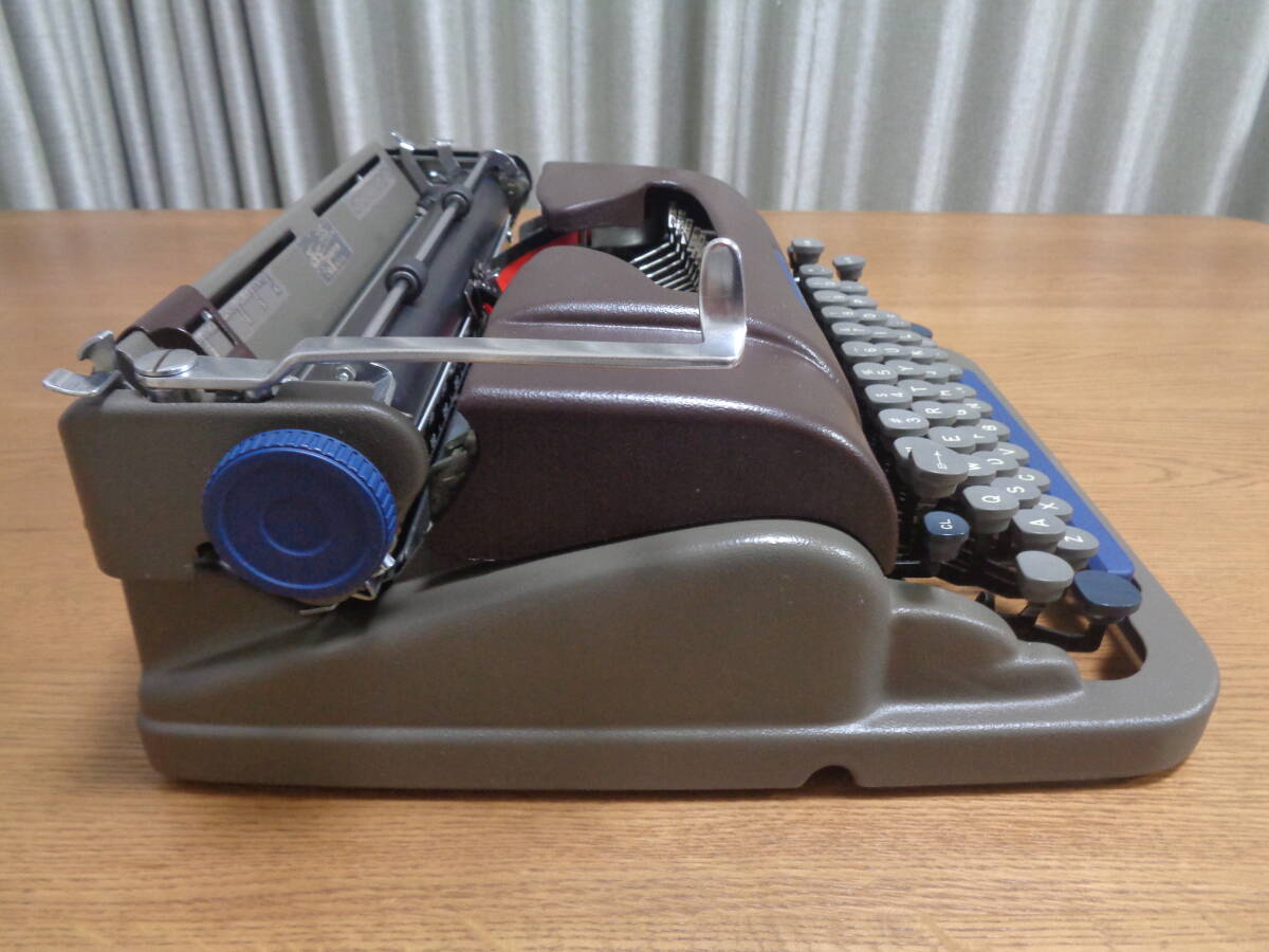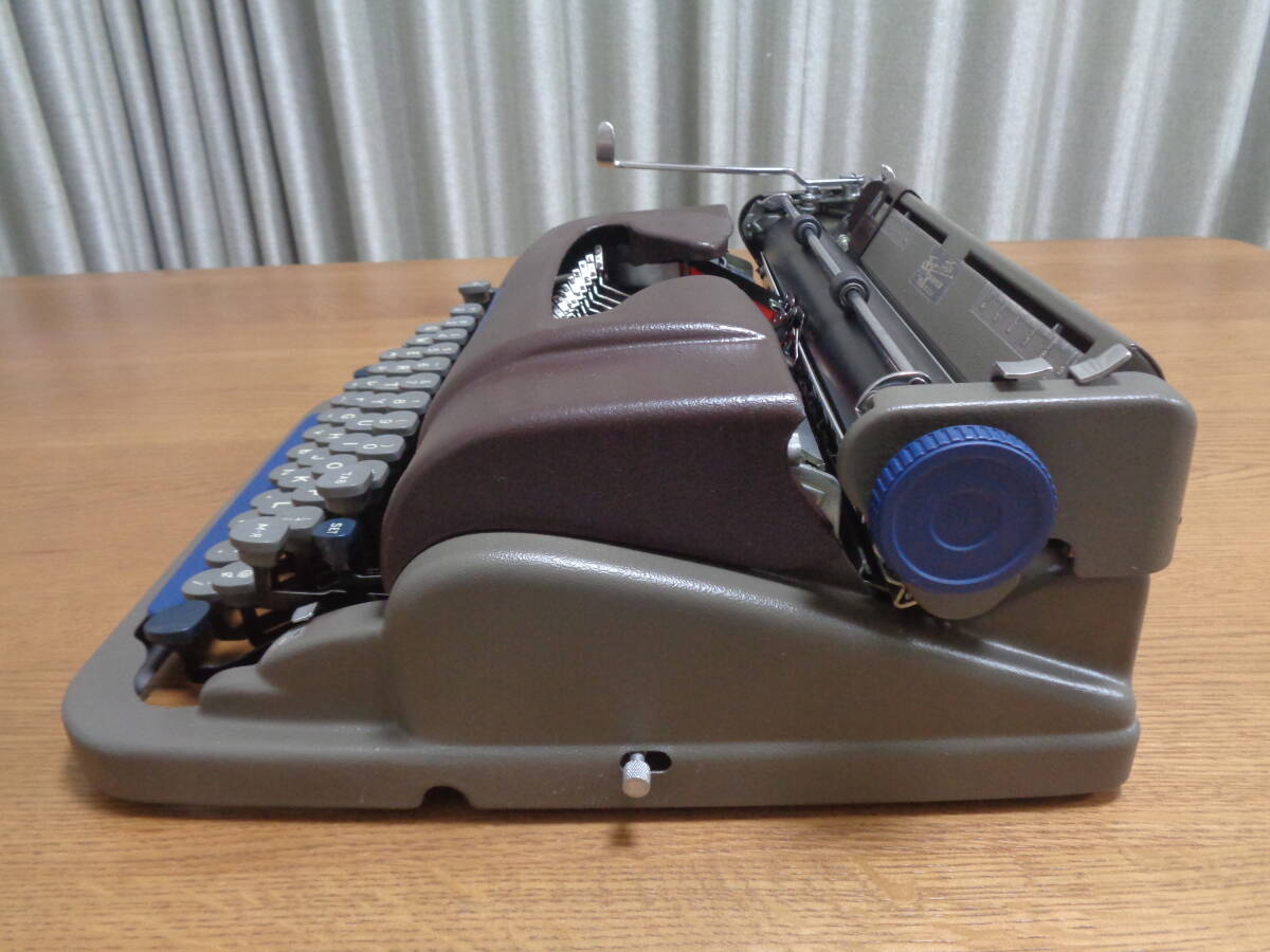 本体のフレームやキャリッジのノブ、タイピングキーの一部をディープオリーブ、ダークブラウン、デニムブルーに塗装しています。色ムラや塗装後の組付け時の細かな傷、汚れなどありますが、他とは違う雰囲気が出ていると思います。