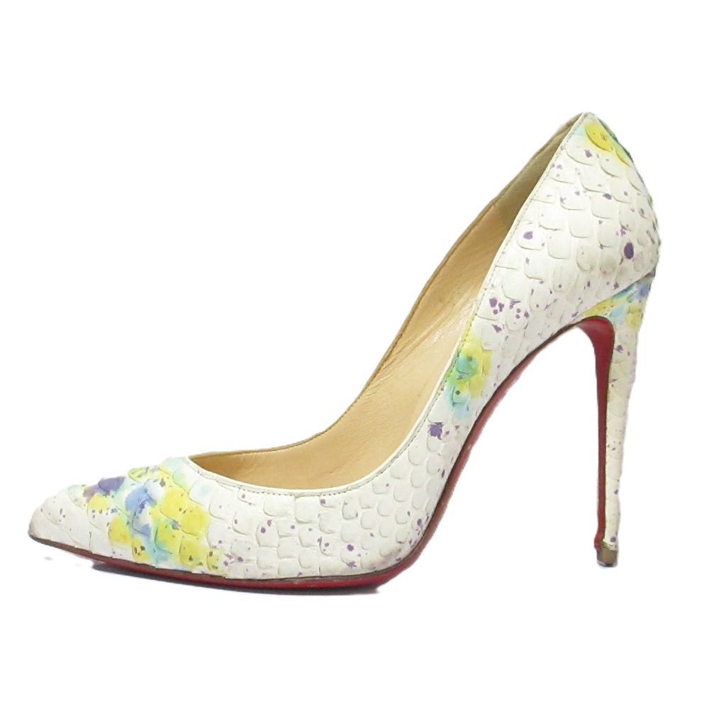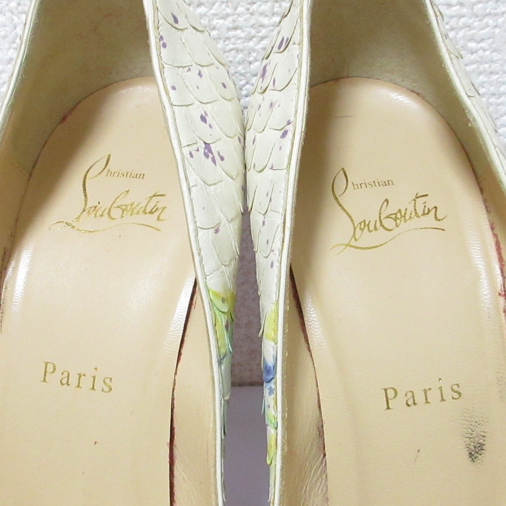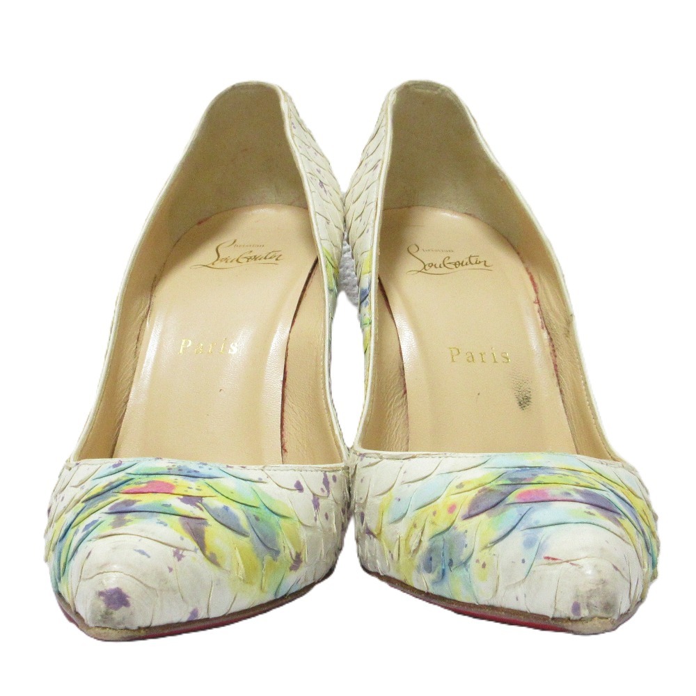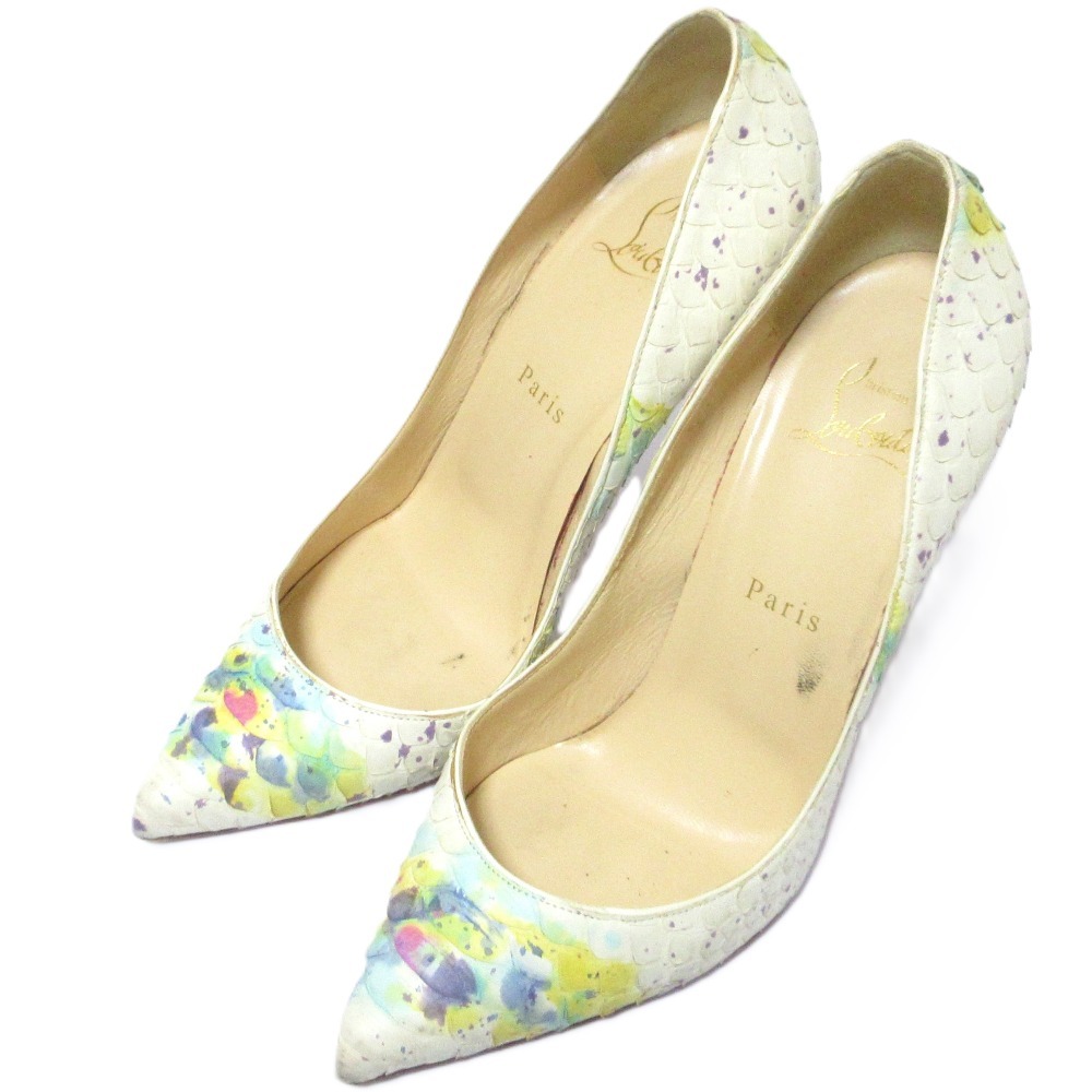 Christian Louboutin クリスチャンルブタン パイソンレザー ハイヒール ポインテッドトゥパンプス 38サイズ 24cm相当 アイボリー
